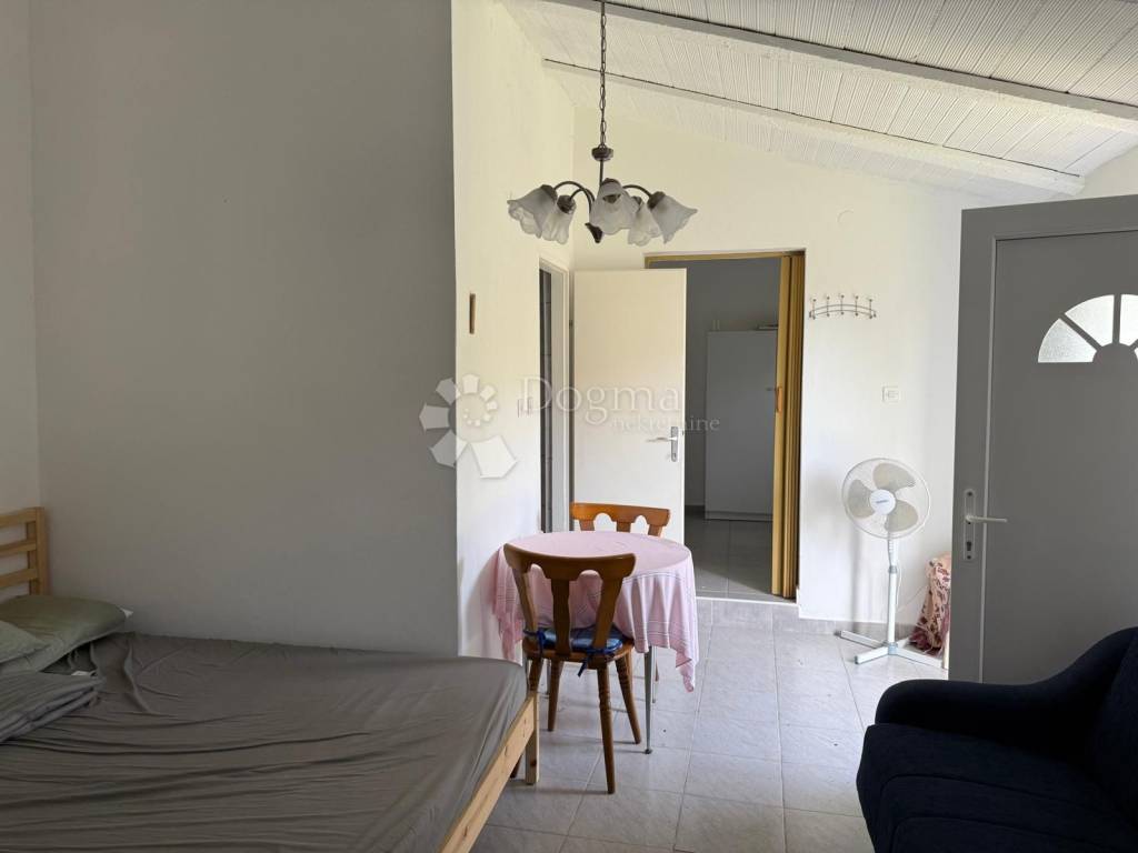 Inside, a compact living unit awaits, consisting of a combined living room/bedroom, a modest kitchen and a neatly maintained bathroom. The property also includes a garage and a storage area, ideal for tools, hobbies or everyday items.