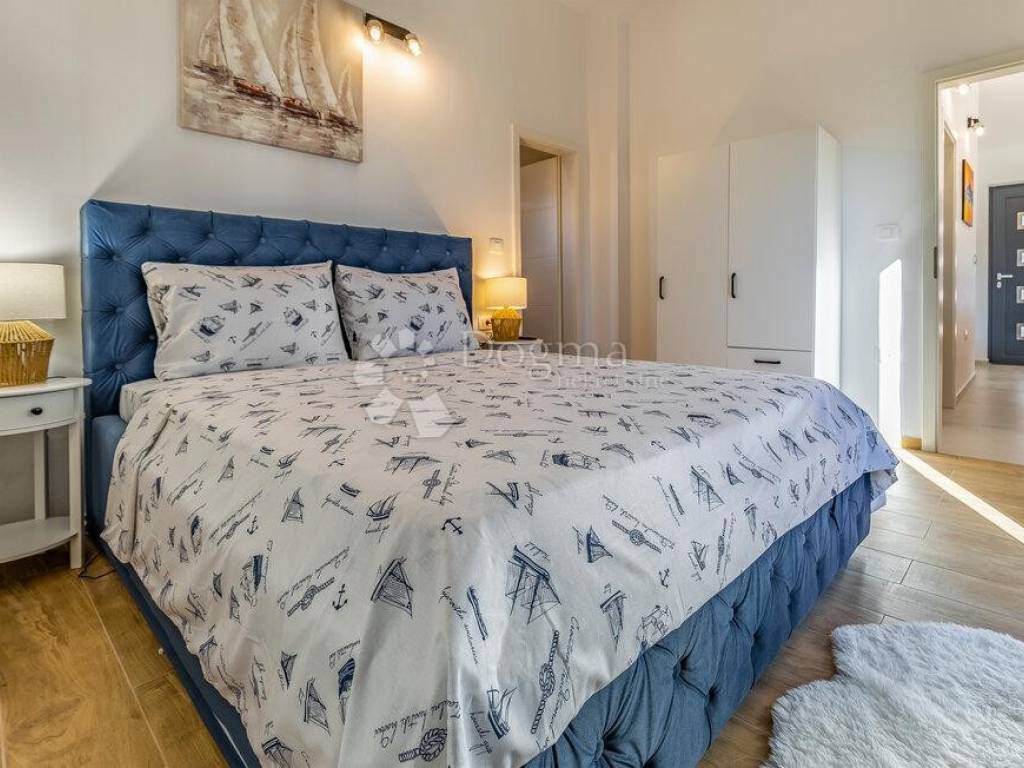 Located in a peaceful setting in the picturesque village of Kavran, just a few minutes drive from the sea, this elegant modern ground-floor villa of 100 m is surrounded by a beautifully landscaped plot of 610 m.