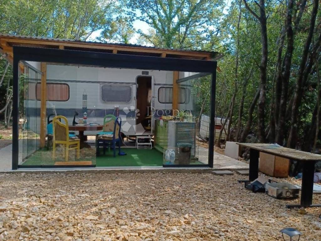 teren nije građevinski ali u izgrađenoj zoni. do kraja godine ide novi prostorni plan i biti će građevinski. kuće sa bazenima okružuju ovaj teren. na terenu je struja,voda je na 80m od terena.očišćen i ravan teren na kojemu je kamp kućica u kojoj se obitava. 500m od centra te 3,5km od mora.