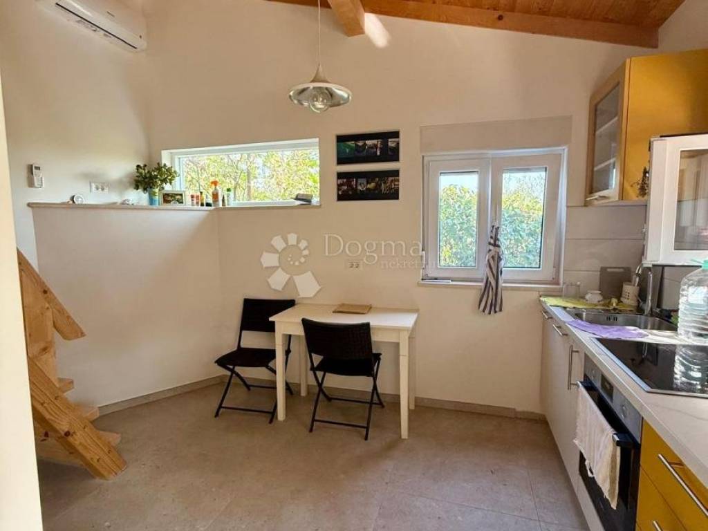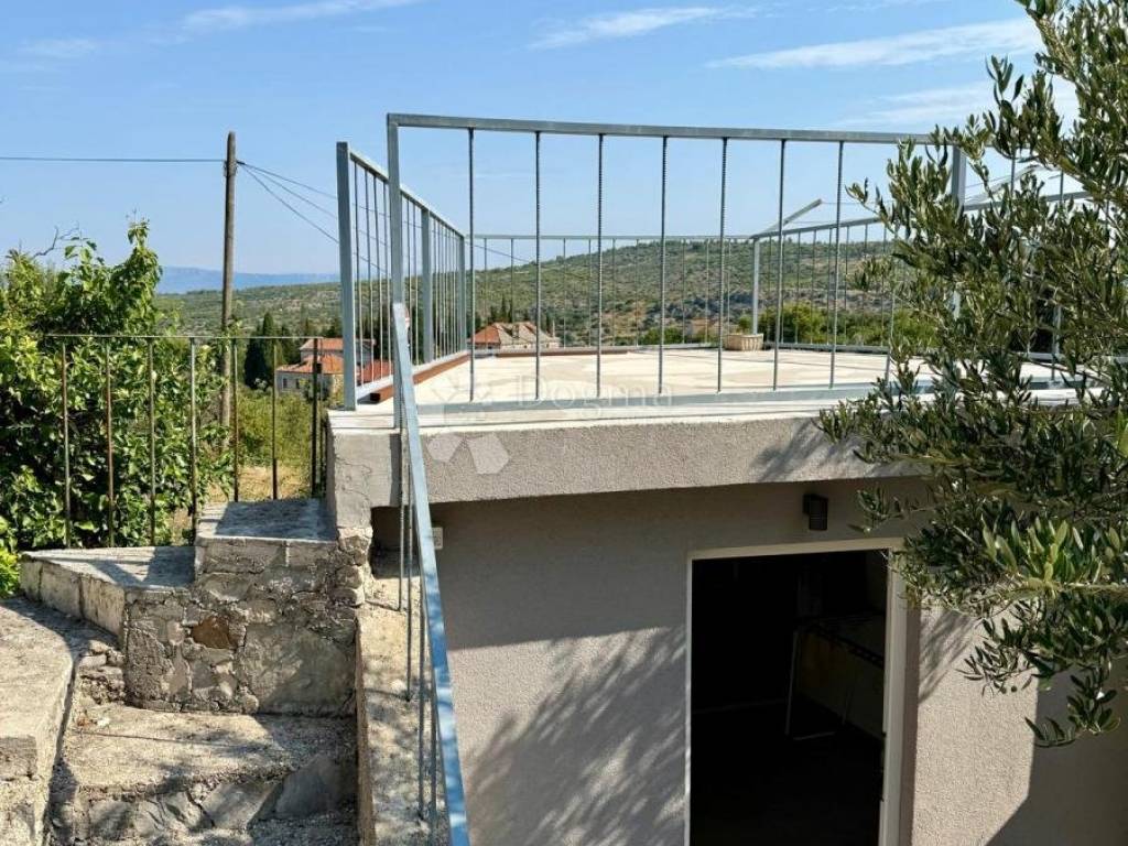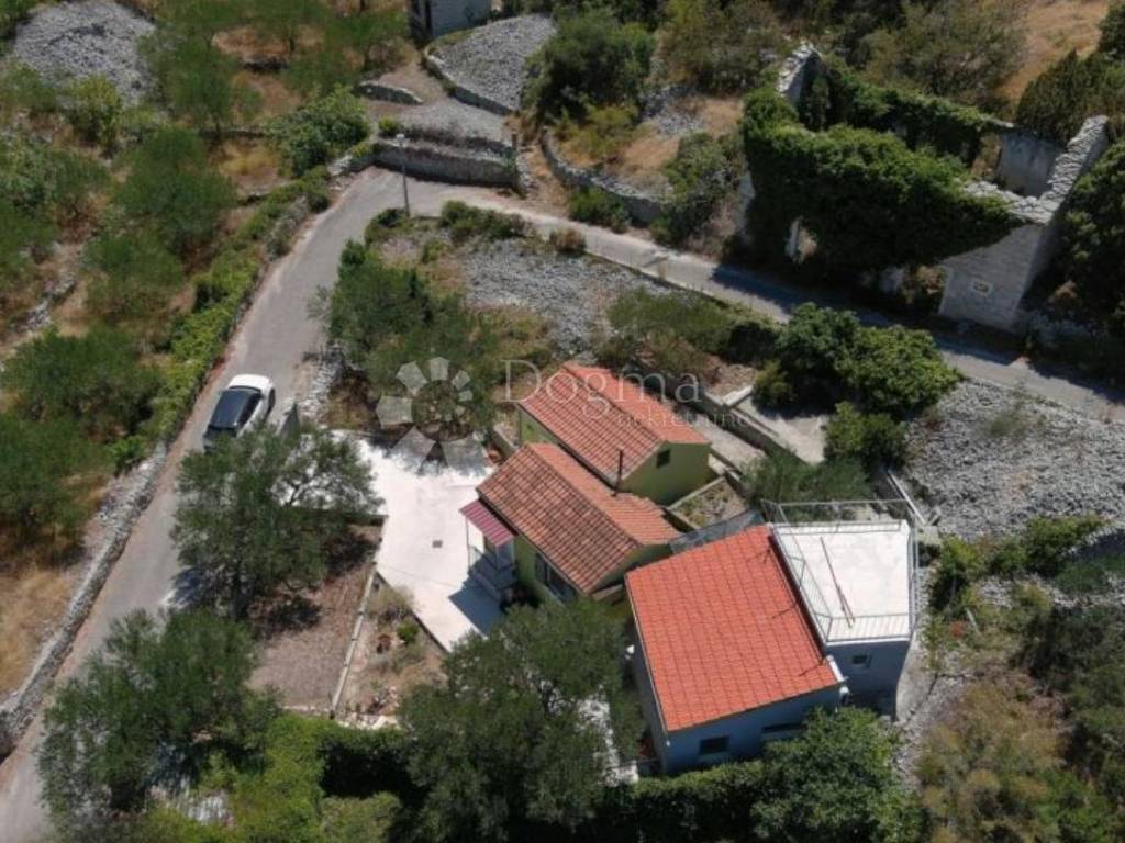 A charming single-story house for sale in the picturesque and peaceful village of Bobovišće, just 1 km from the beautiful bay a 3-minute drive or a leisurely 20-minute walk. The house covers 103 m and consists of two separate residential units, ideal for living, renting, or a combination of both. The 415 m yard includes a garden, terrace, olive tree providing shade, parking space, and room for additional greenery.