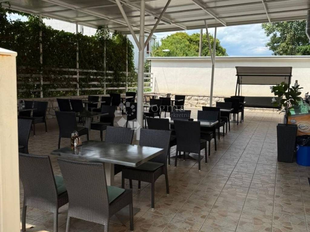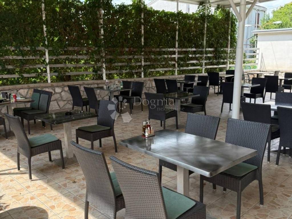 Prostrana terasa s tendom na mehaničko otvaranje/zatvaranje, savršena za sezonski rad i ugodno sjedenje na otvorenom.