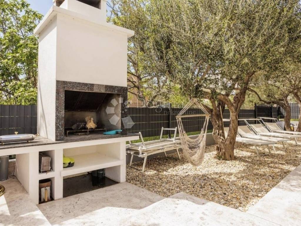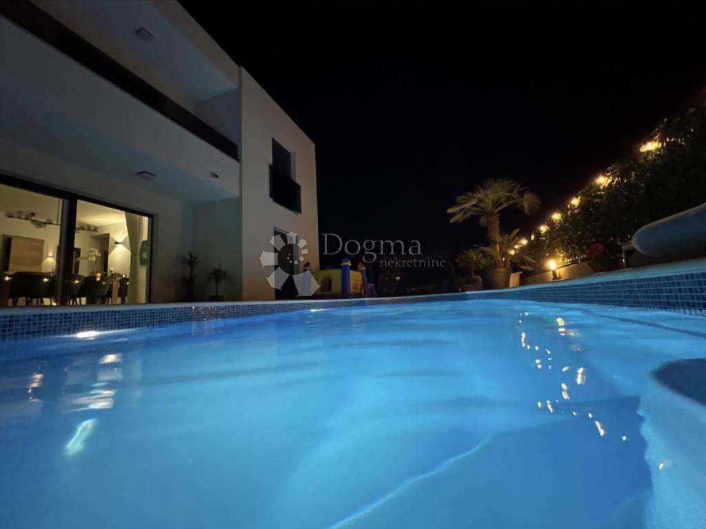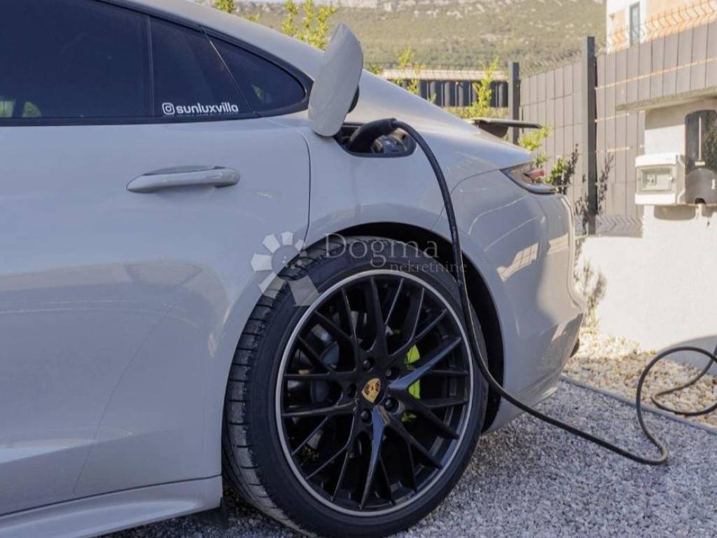 Modern house with swimming pool and sauna for sale in Kaštel Stari ideal for living or investment The house is located in an attractive location, located in the immediate vicinity of beaches, restaurants and all necessary amenities. It is spread over two floors. On the ground floor there is a spacious apartment that includes a modernly decorated kitchen with dining room and living room, two comfortable bedrooms, a master bathroom and an additional toilet. On the first floor there is a second apartment with a similar layout, but expanded with an additional third bedroom. Additional amenities include a heated pool that allows for use throughout the year, an infrared sauna and an electric vehicle charger. The house was originally conceived as two separate apartments, and although it is currently connected for easier management during the season, the infrastructure is completely ready for re-conversion into two separate residential units. The house is in tourist rental with excellent reviews on well-known platforms, which makes it a safe choice for investors who want to continue an established business without additional investments. At the same time, it is also a perfect fit for families looking for a luxurious, spacious home with the ability to adapt to their own needs. If you are looking for a flexible and well-equipped home in a prime location with a proven track record of value for money, this property offers everything you need.