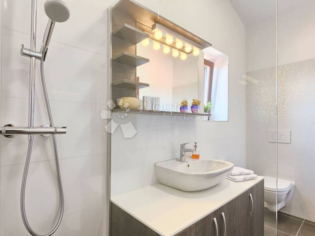 The modern edition conquers the villa with its exterior and interior. Exclusive and pleasant ambience consists of a modern kitchen with dining area, living room which is illuminated by daylight throughout the day. The property also contains three extremely spacious bedrooms with bathrooms and toilets, which with their functionality provide absolute privacy. The living room opens onto a swimming pool surrounded by a landscaped garden and a green fence.