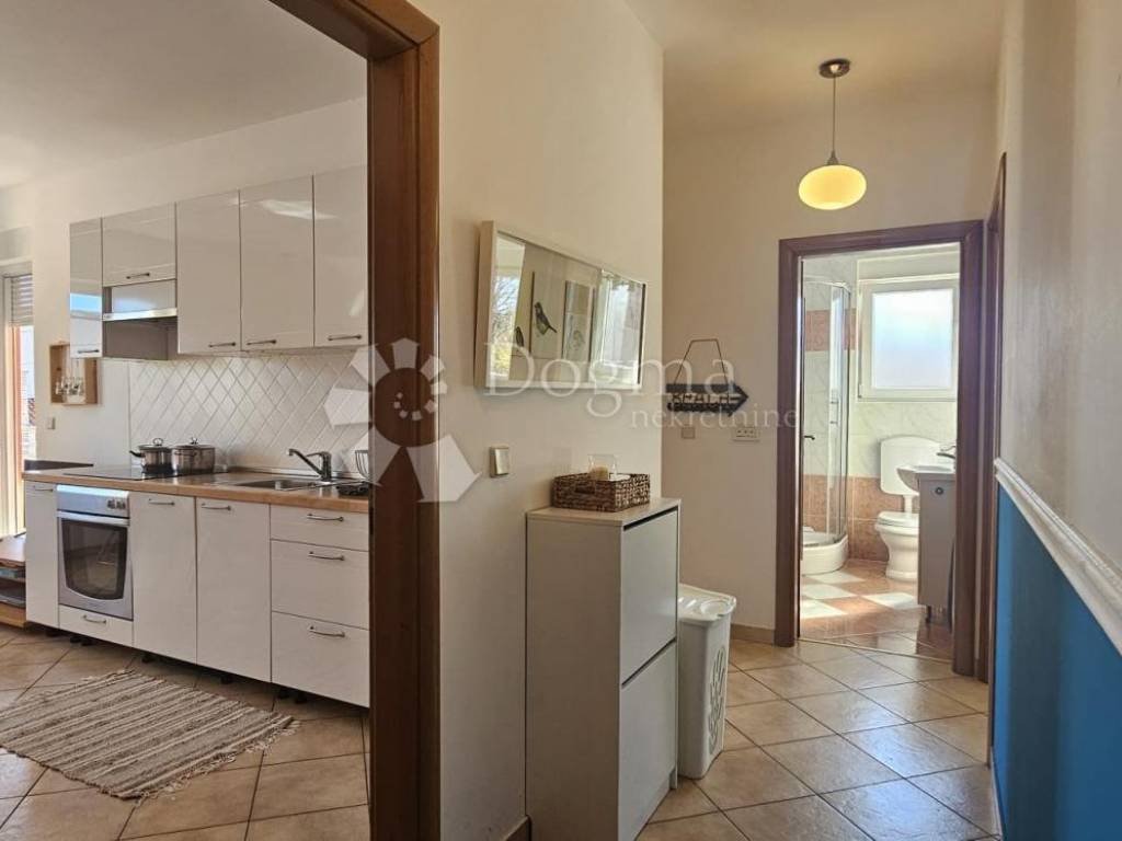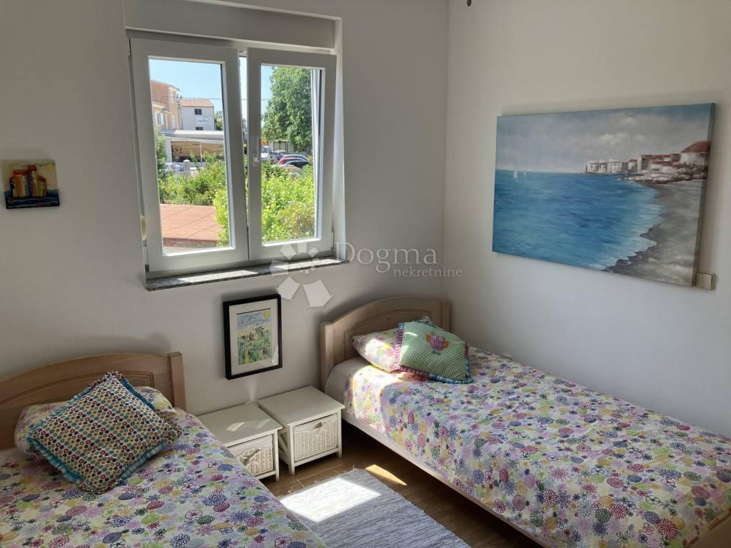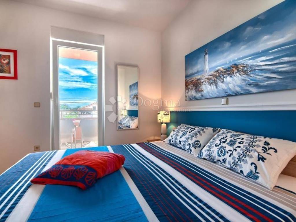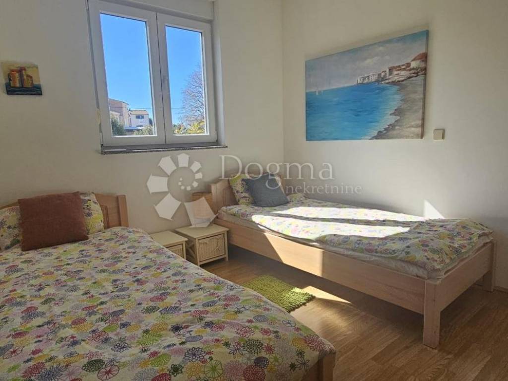 BEAUTIFUL APARTMENT IN PREMANTURA NEAR THE SEA, PEACEFUL SURROUNDINGS! Located in a pleasant neighborhood, the apartment offers an ideal combination of comfort and Mediterranean atmosphere. The apartment is ideal for family life, vacation or investment in tourist rental. Close to the sea, nature and all necessary amenities. Property description: Area: 64 m Floor plan: Open space living room with dining room and kitchen, hallway, two bedrooms separated by a bathroom Balcony (8 m): Access from the living room and master bedroom Additional space: Basement 6 m Parking space included Security: Security entrance door Equipment: Sold furnished For more information and to arrange a viewing, contact us! M. +385 91 732 5577