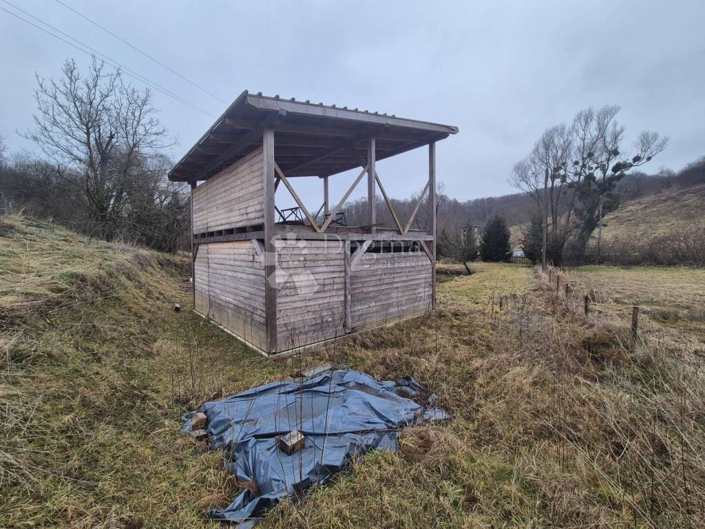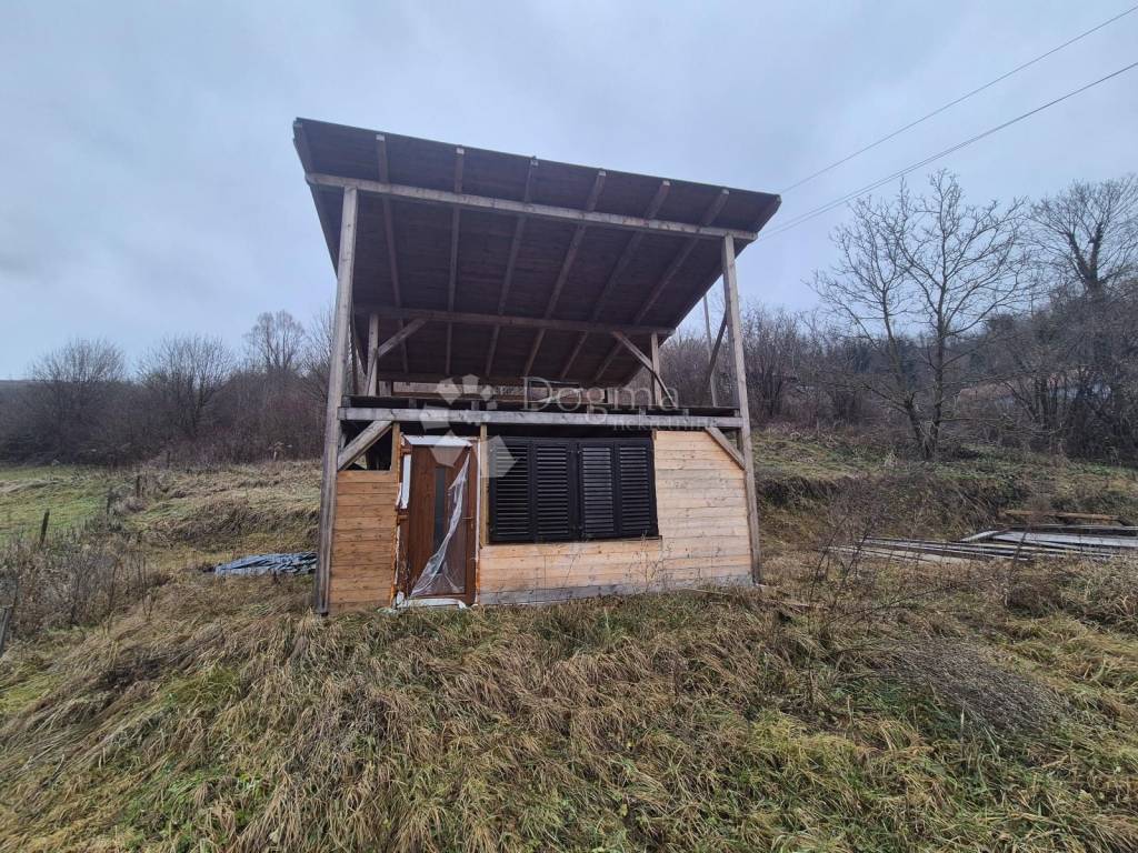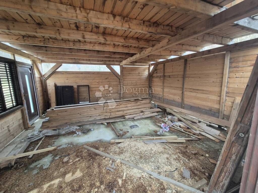 Cijena obuhvaća kućicu u fazi započete gradnje (uključujući i materijal za nastavak gradnje; pokrov za krov, drvena stolarija, grede i drvena obloga), te do kućice izrađenu temeljnu deku za sjenicu u veličini 7x4m.