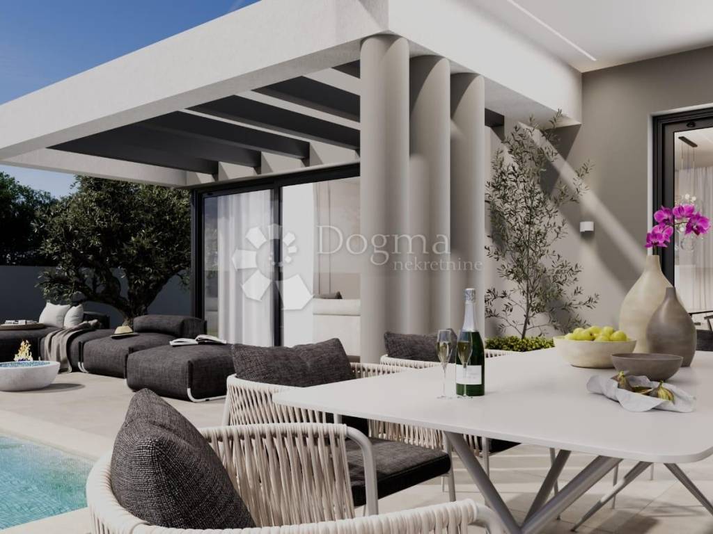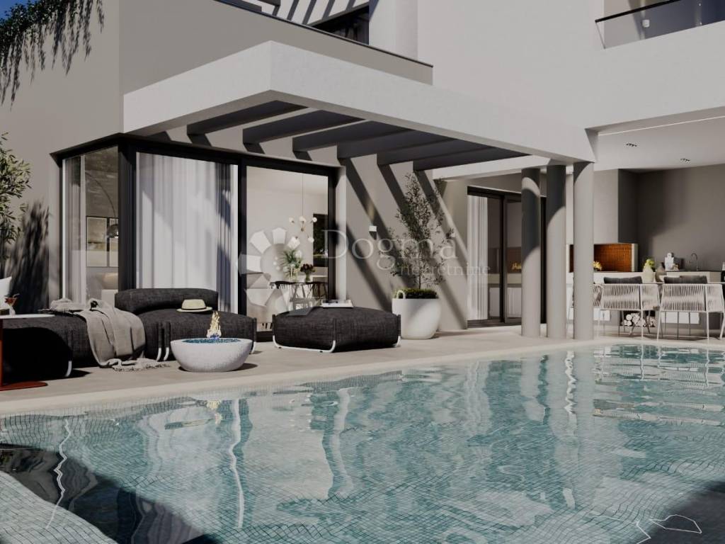 Your new story begins: A luxurious villa with a pool and a wonderful view of the sea and greenery! Located in a quiet and authentic Istrian village, near Krnica, this spacious villa with a swimming pool offers a perfect combination of modern design and traditional Mediterranean charm. The villa is ideal for anyone looking for privacy, relaxation and closeness to nature, with easy access to all the amenities that beautiful Istria offers. This beautiful villa offers a total net area of 145.61 m, distributed over the ground floor and first floor. The house is a perfect combination of modern architecture and comfort, with a carefully designed layout of the space. Ground floor (83.27 m indoor space): - Covered entrance - Hallway - Open space living room, kitchen and dining room - Storage room - Toilet - Bedroom - Bathroom - Covered terrace - Uncovered terrace First floor (62.34 m indoor space): - Staircase and hallway - Bedroom - Bathroom - Wardrobe - Uncovered terrace - Bedroom - Bathroom - Wardrobe - Covered terrace - Utility The villa is being sold finished, without furniture, and is equipped with all modern amenities. There are 4 parking spaces, an 8x4 swimming pool with jacuzzi, and a spacious garden of 535 m. In each bedroom and in the living room, there are air conditioners, and the whole house has underfloor heating. This villa offers a beautiful sea view from the ground floor and first floor, providing the perfect atmosphere for living or vacationing. . Ideal for families or as a rental investment. For more information or to arrange a viewing, please contact us. Don't miss this unique opportunity! STEFANO PERUŠKO REAL ESTATE ASSISTANT Mobile +38599/721-0395 stefano.perusko@dogma-nekretnine.com