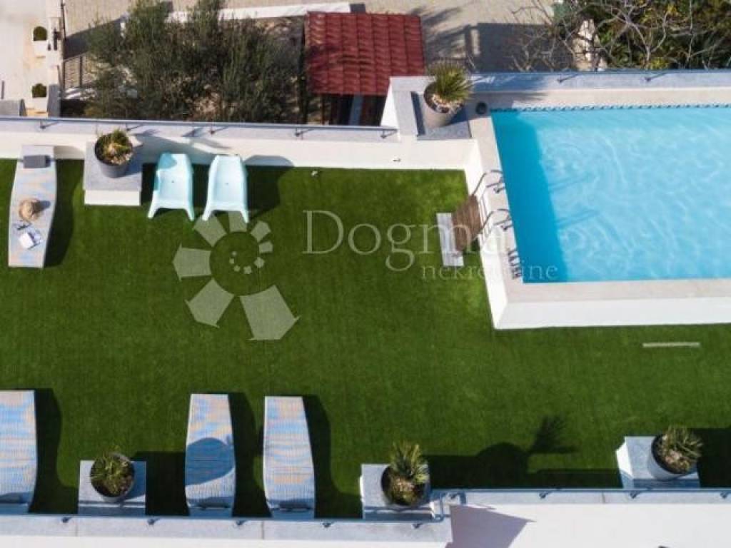 Mini hotel stambene površine 534m2 ima restoran i apartmane za iznajmljivanje, izvrsna je investicijska prilika koja budućem vlasniku pruža razne mogućnosti. Hotel ima tri etaže i prodaje se sa svim namještajem. Ukupno ima 7 moderno uređenih apartmana. Svi apartmani imaju balkon s prostorom za sjedenje, potpuno opremljenu kuhinju s blagovaonicom, kupaonicu. Većina soba ima pogled na more. U prizemlju se nalazi restoran i spremište. Na samoj plaži hotel ima i bar uz more sa 17 stolova iznajmljenih od grada.