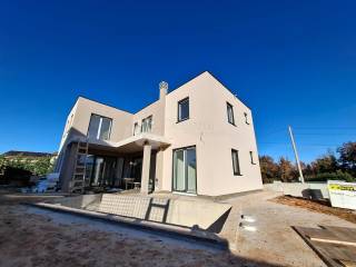 POREČ (surroundings) - Modern detached villa In the heart of beautiful Istria, not far from the picturesque Poreč, is this impressive detached villa with an area of 171.44 m, spread over two floors. The perfect combination of luxury and functionality makes it an ideal place for family life or a holiday in nature. The ground floor of this beautiful villa welcomes you with a covered entrance, which leads to a world of spaciousness and elegance. An open hallway leads to a modernly equipped kitchen with a dining area. The spacious living room, equipped with large glass walls, provides natural light and access to a covered terrace of 15 m - ideal for relaxing with a morning coffee or evening socializing. The ground floor also has a storage room and a comfortable bedroom with a private bathroom, perfect for guests or as an office. With an elegant oak staircase, we reach the first floor which includes three spacious bedrooms, each with its own bathroom and access to a terrace offering a beautiful view of the surroundings. The garden of this villa is a true paradise, with a summer kitchen perfect for summer gatherings, a pool for refreshing on hot summer days, and a sundeck that invites you to relax with a good book or your favorite music. Built with high-quality materials, this villa offers a heating and cooling system via a heat pump integrated into the concrete slab. In addition, the house is equipped with the possibility of installing a fireplace and air conditioning. Sophisticated roller shutters and mosquito nets on the joinery ensure additional comfort, while preparation for solar panels is an excellent addition to energy efficiency. With three secured parking spaces, this villa represents the perfect harmony of modern aesthetics and practicality, and its proximity to Poreč allows you to enjoy the rich offer of amenities, beaches and cultural attractions. Here, every day can be a vacation! For all additional information and/or viewing, please contact with confidence a licensed real estate agent with many years of experience in real estate, Marija Šantor Agent with a Mob. license. 0922827379 Phone 052 770-811 marija.santor@dogma-nekretnine.com