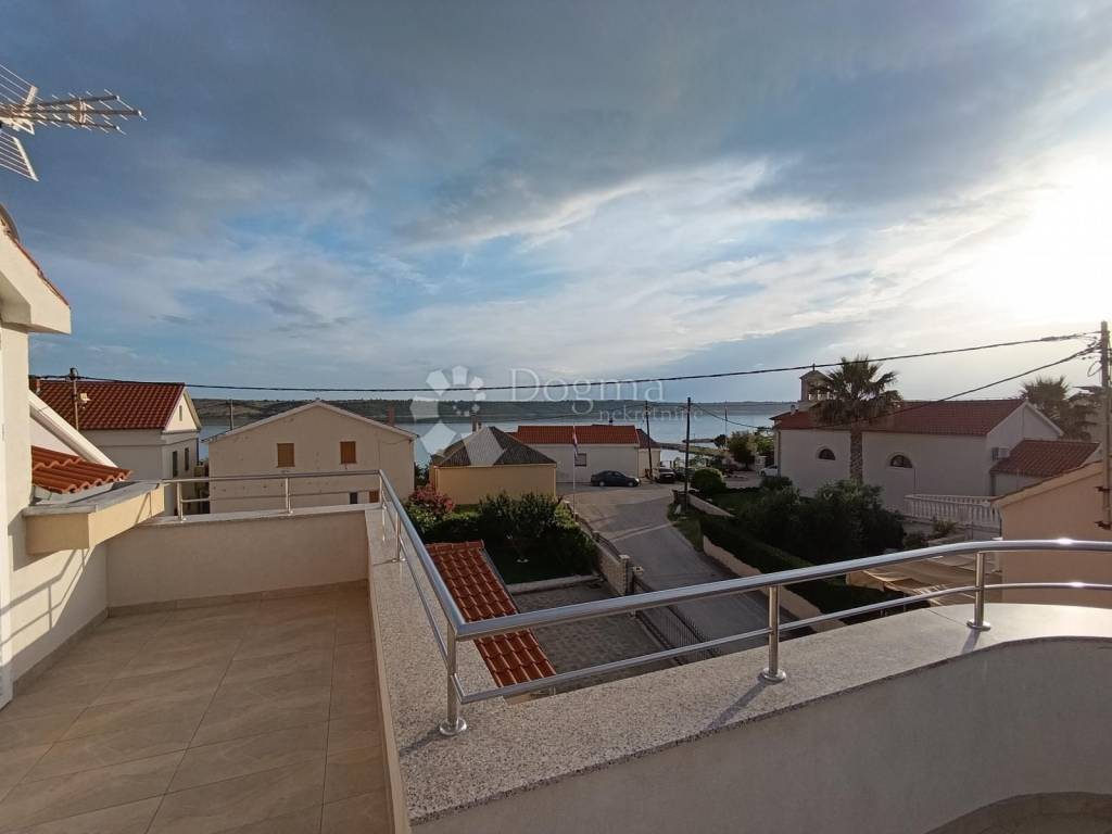 The house consists of a ground floor, the first floor, and a high attic. On the ground floor and the first floor, there are two one-bedroom apartments each. Each apartment includes a kitchen and living room, one bedroom, a bathroom, and a terrace. The top floor is a high attic that serves as a separate residential unit, consisting of a kitchen and living room, a hallway, two bedrooms, a bathroom, a toilet, and a terrace. An external staircase leads from the ground floor to the first floor, and an internal wooden staircase connects the first floor to the high attic. There is a storage room on the ground floor, and the yard, covering around 100m, is paved and enclosed by a wall. The house has a sea view from the first floor and the high attic, which features the largest terrace. A parking area of approximately 170m is located 50 meters from the house. The total net area of the house is 350.36m.