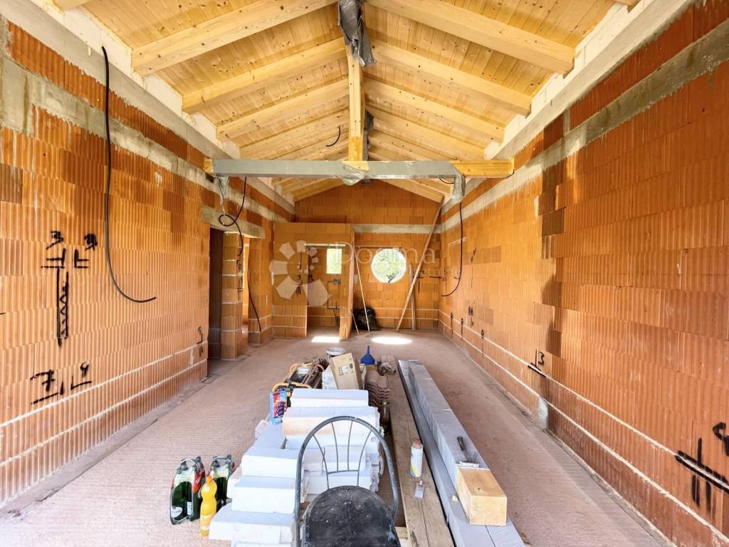 This beautiful one-story house is located only 4.5 km from the sea and beaches and Novigrad. It consists of an entrance area, a toilet, an extremely spacious open space living room connected to the kitchen and dining room and an exit to the terrace, sun deck and a direct view of the pool. It also has 2 bedrooms, each of which has its own bathroom. The facility also has its own storage room with space for a washing machine and a clothes dryer. The house has its own garden of 280m2 and 2 parking spaces.