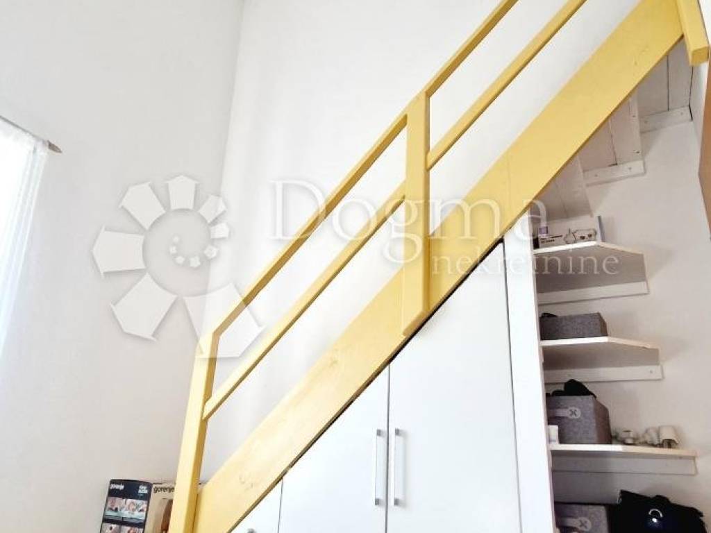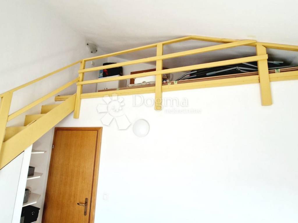 The apartment has two bedrooms, one of which has a gallery that serves as a storage room.