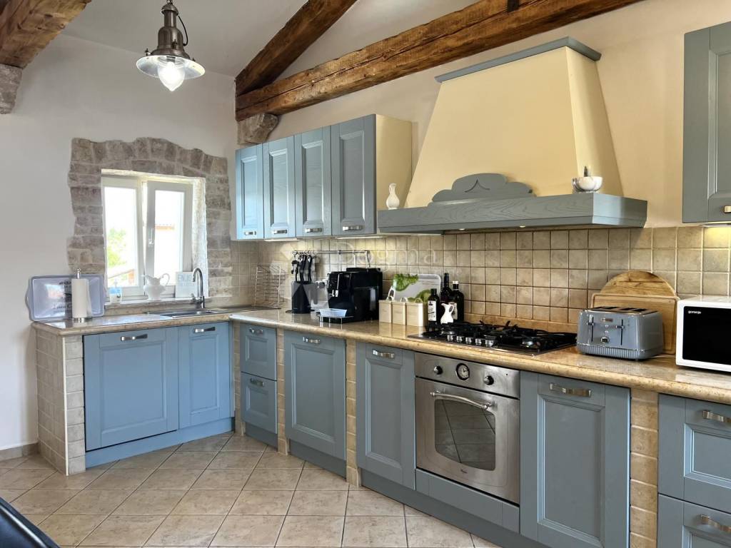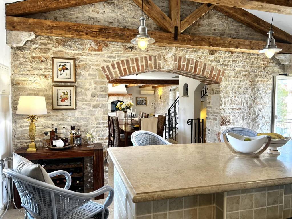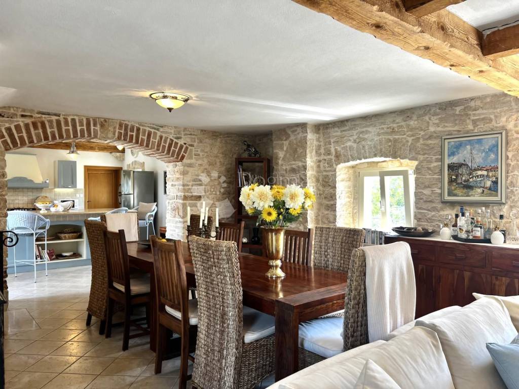 MARČANA - ISTRIA Marčana is a charming village located in the southeastern part of Istria, surrounded by untouched nature and a rich cultural heritage. This municipality offers an authentic experience of Istrian life, with stone houses, vineyards and olive groves that cover its gentle hills. Visitors are attracted by the peace and quiet, with the possibility of exploring archaeological sites and medieval churches. Marčana is an ideal place for those looking for a vacation away from the tourist crowds, offering the warmth and hospitality of the local population and beautiful landscapes to discover. We offer a beautiful authentic Istrian house that extends over 3 floors (ground floor, first and second floor). On the ground floor there are 3 bedrooms and 3 bathrooms, in a rustic style. Internal stairs lead to the 1st floor where there is an impressive kitchen with dining room, living room and 2 terraces with views of the property and the surrounding area. Then on the first floor there is another bathroom and a very large storage room. On the second and last floor is the largest bedroom with its own bathroom. The 1,600 m2 plot offers a 48 m2 swimming pool, a summer kitchen with barbecue and bathroom, and a special attraction, a well from 1959. * AUTOCHTHON STONE HOUSE WITH SWIMMING POOL * 4 BEDROOMS and 5 BATHROOMS + 1 with a summer kitchen * GAS CENTRAL HEATING * FIREPLACE IN THE LIVING ROOM * 6 X INVERTER AIR CONDITIONING * JACUZZI * MULTIPLE PARKING SPACES