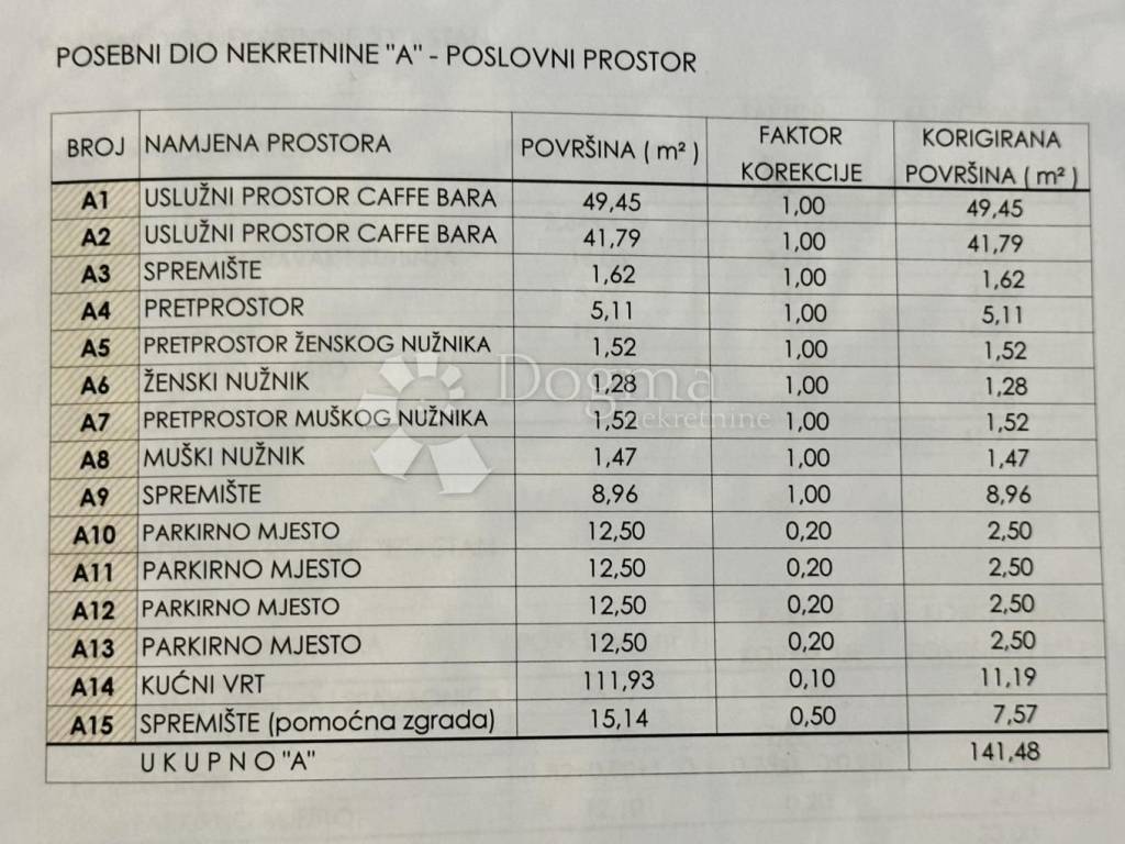 Veličina prostora je 108 m2 a osim prostora za goste ima i mogućnost pretvorbe sadašnjeg skladišta u kuhinju (nekada bila i pizzeria).