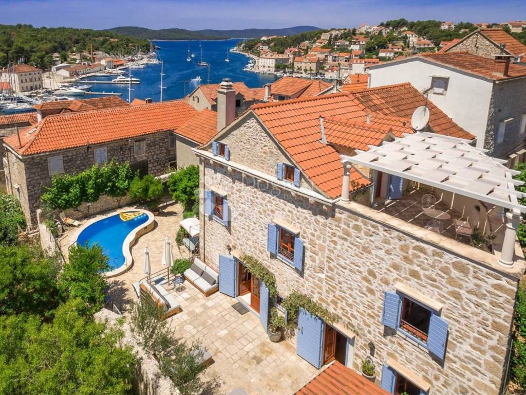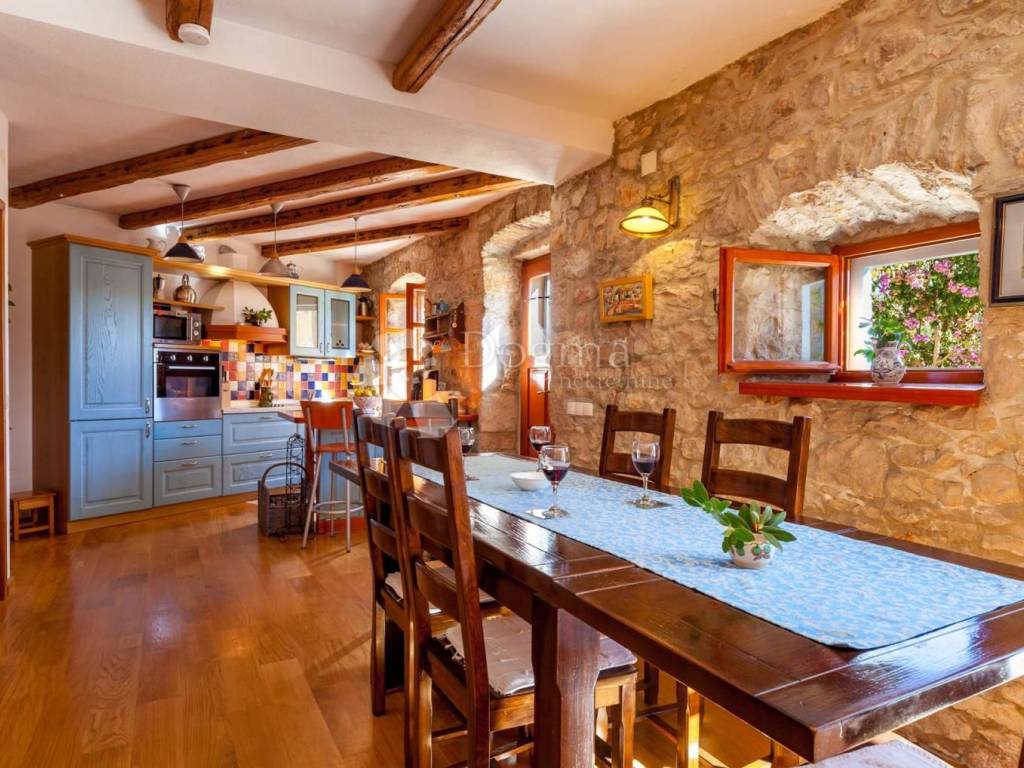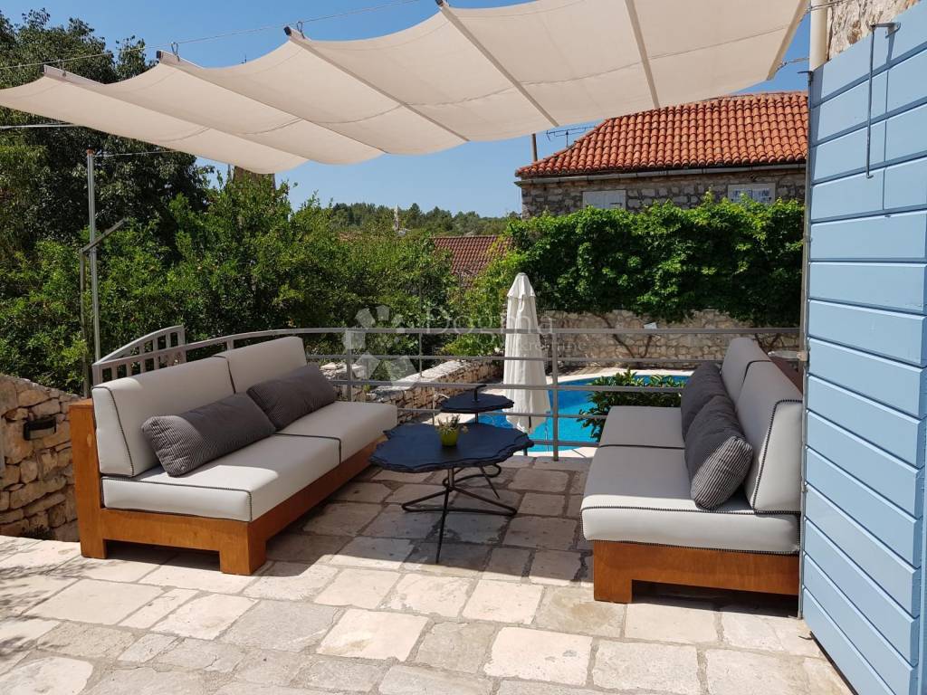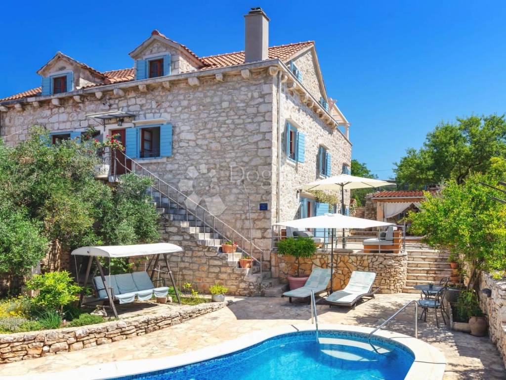 For sale, charming stone villa in the heart of Milna on the island of Brač. This authentic Dalmatian house offers the perfect combination of traditional and modern, providing comfort and luxury in the heart of Mediterranean nature.