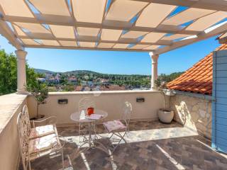 The garden of this villa is carefully landscaped with Mediterranean plants, ideal for relaxing and enjoying the warm summer days. The pool is a perfect addition, providing refreshment and relaxation in the privacy of your own home. Authentic stone walls give this villa a special charm and ensure a pleasant interior temperature. Just a few minutes' walk from the crystal-clear sea, the quiet location in Milna makes this property ideal for families or those seeking peace and privacy.