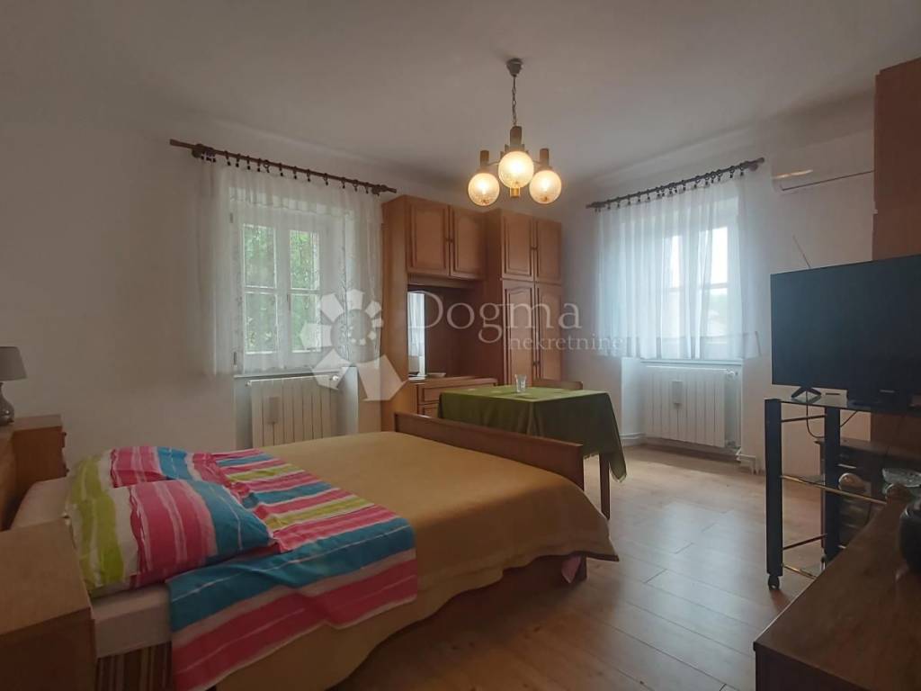 A semi-detached house is for sale located in a quiet, elevated location with a wonderful view of the whole of Labin. This house, the last in the row, is spread over two floors, each approx. 70m. The ground floor includes an entrance hall, a kitchen with a dining room, a living room, a bathroom, a toilet, a storage room, a tavern with a fireplace and a glazed veranda. An internal wooden staircase leads to the first floor where there are two bedrooms and a storage room. The house has oil-fired central heating, a new roof and new PVC carpentry on the first floor. The yard of 450 m offers numerous possibilities for decoration. According to today's standards, the house requires renovation, but it is habitable in its current condition. It is ideal for a family looking for proximity to the city with a peaceful rural environment.