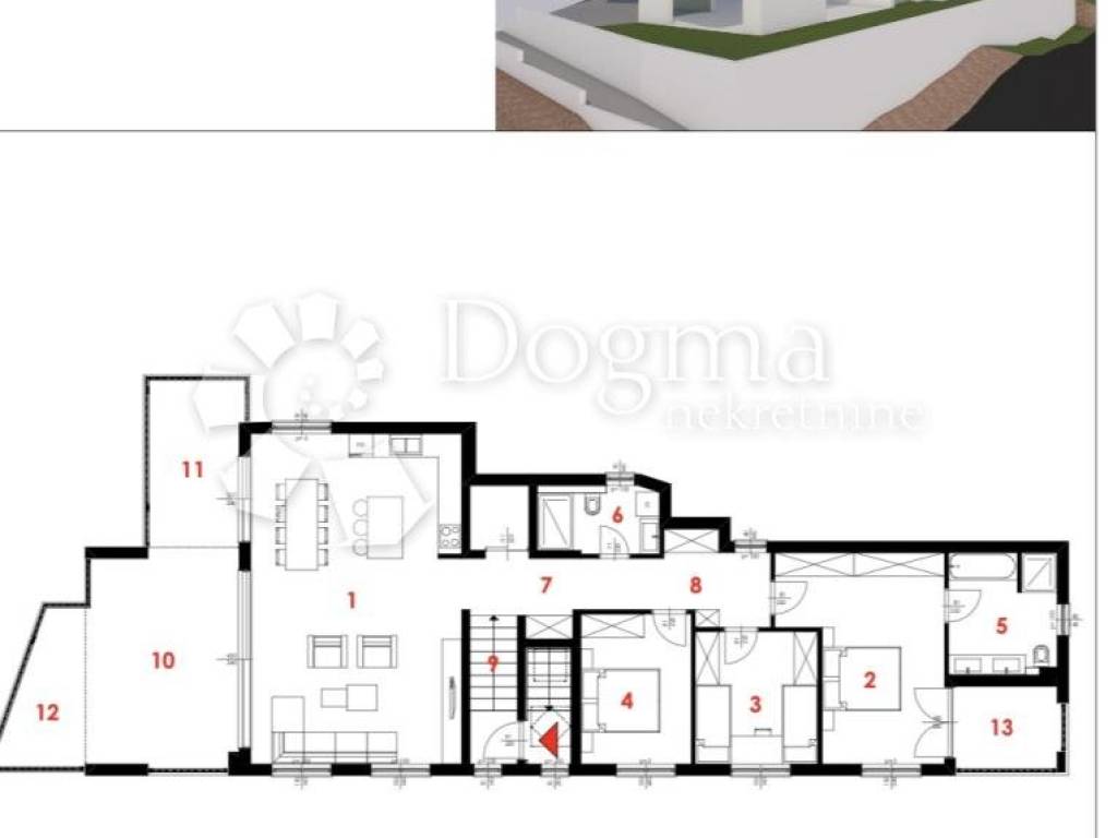 The building is of smaller capacity, perfect for both permanent residence and renting to tourists, situated next to a green oasis with direct access from the main road. It consists of a basement with storage space, ground floor, and three floors connected by an elevator and staircase.