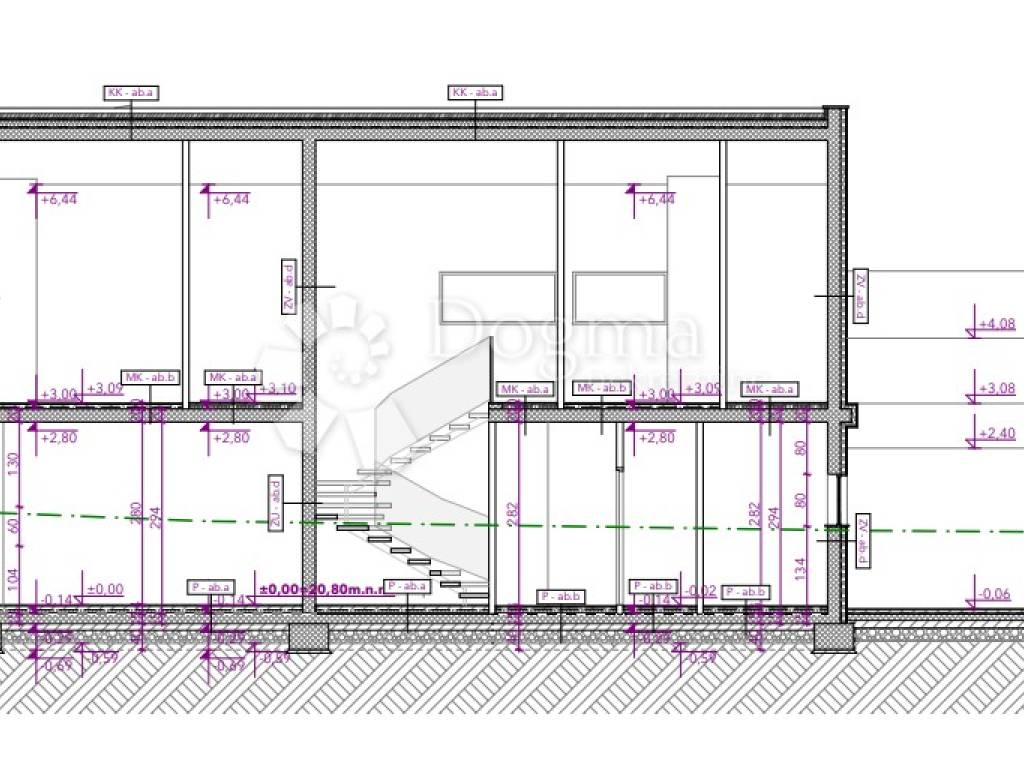 *hallway, living room with dining room and kitchen, toilet, laundry room, storage room, gym, room/study, hallway with wardrobe and covered terrace.
