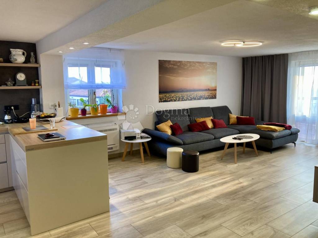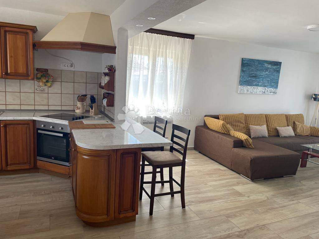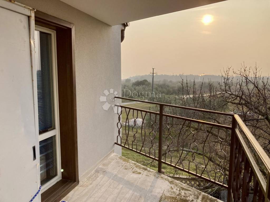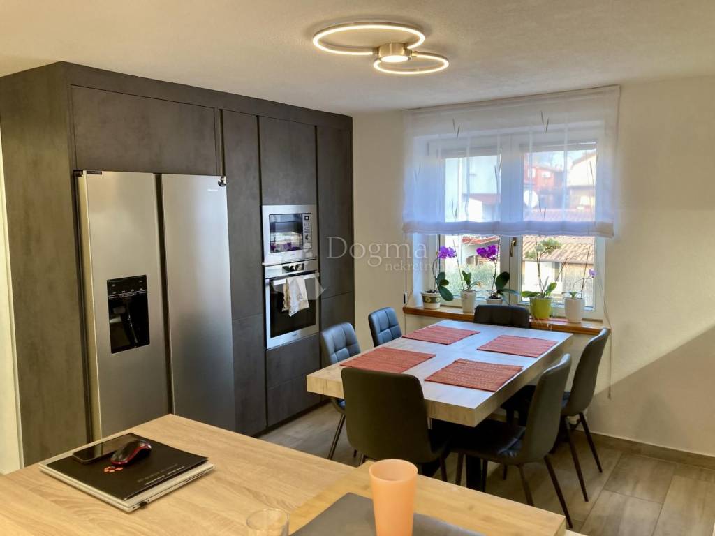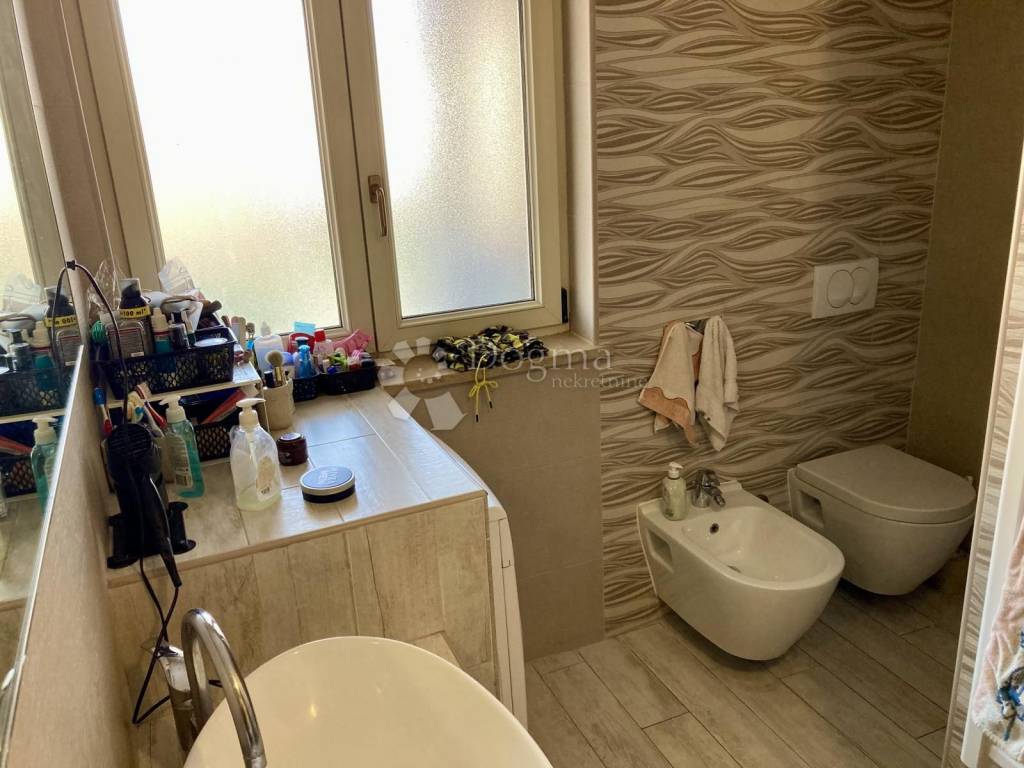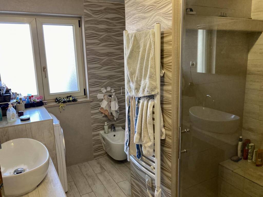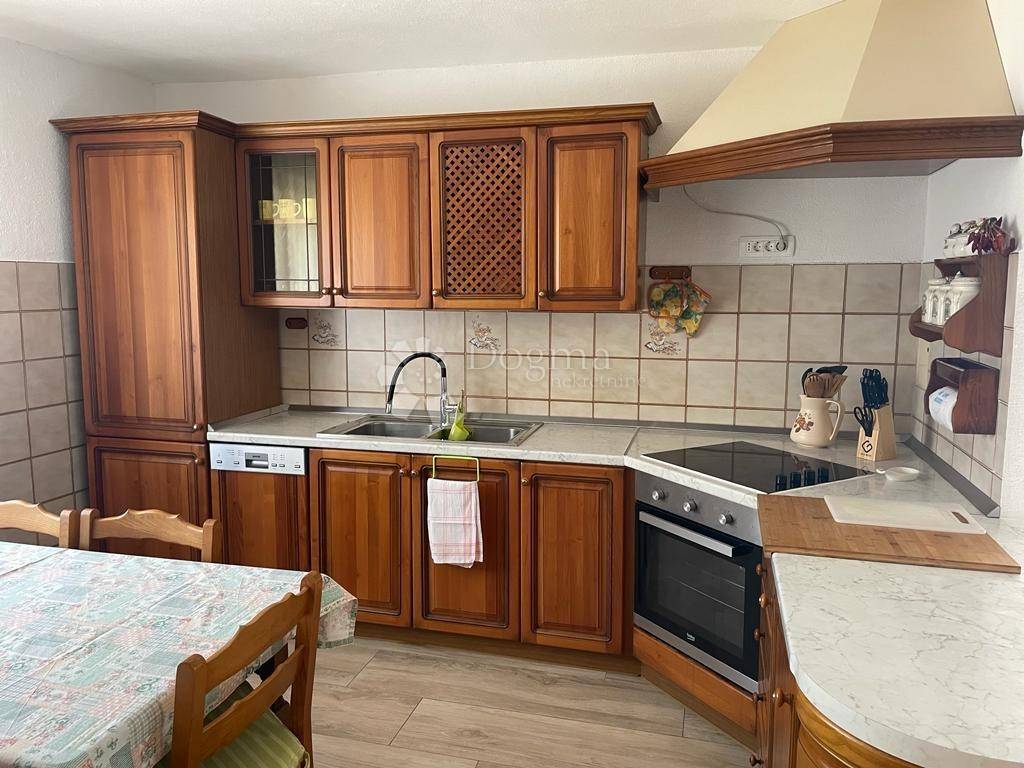 The first-floor apartment, with an area of 125 m2, also includes a kitchen, dining room, living room with access to a closed terrace with even more beautiful views of the sea and the town of Novigrad. There are also three bedrooms, one with its own terrace, and one currently used as a storage room.