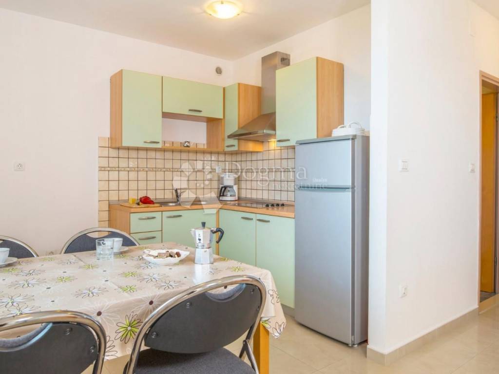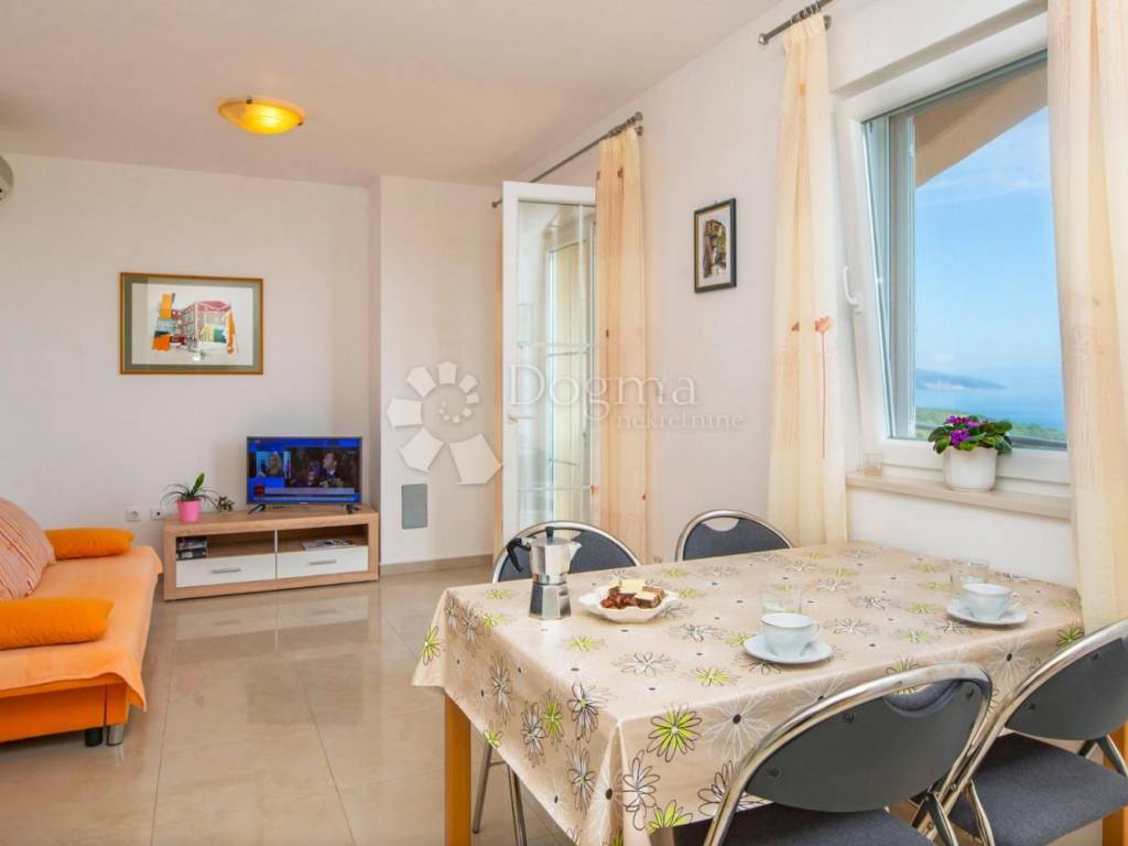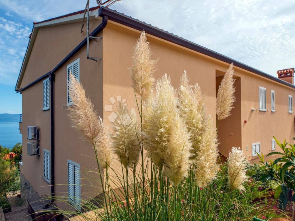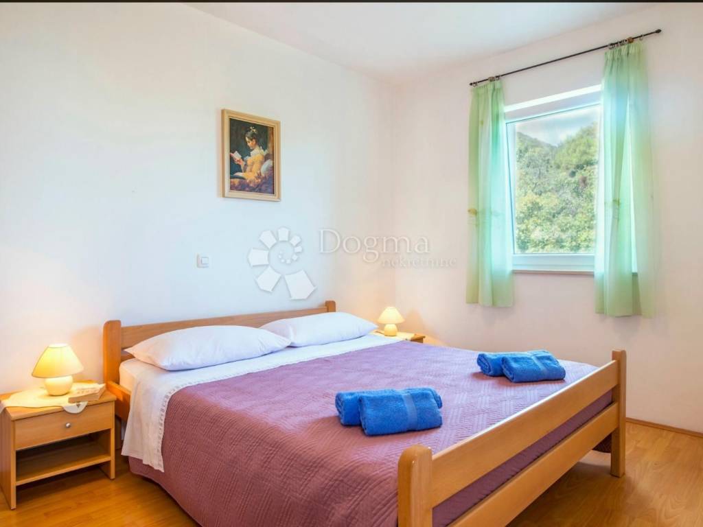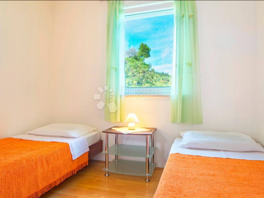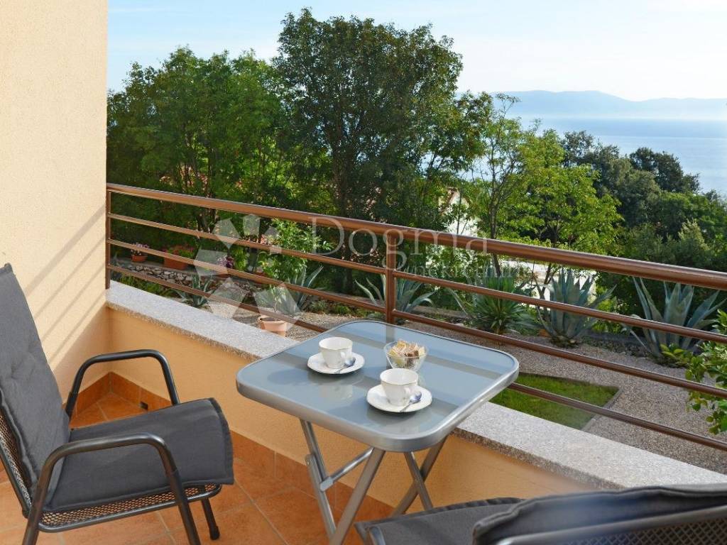 The first floor of the house also contains two residential units, each with an area of 54 m. Each upstairs unit has two bedrooms, a bathroom, and a living area that includes a living room, dining room, and kitchen. The terrace on the first floor offers an open view of the sea, the island of Cres and the surrounding area.
