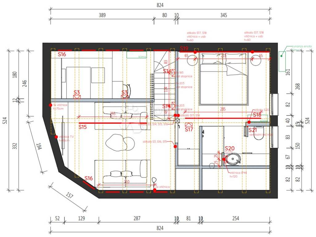 The larger one is an old stone house that has been thoroughly renovated (63 m footprint), with completely new floors, windows, partition walls, and a staircase to the upper floor.