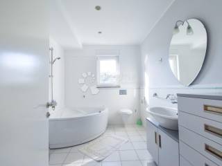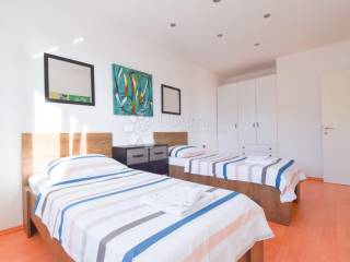 Upon entering, you're greeted by a large living room perfectly integrated with the kitchen and dining area, creating the heart of the home. The bright, open, and airy ambiance provides a pleasant living experience. With three bedrooms, the apartment is designed to meet the needs of any family. One bedroom has its own en-suite bathroom, offering intimacy and convenience. Another bedroom opens onto a spacious loggia with a stunning sea view. The third room, with two smaller beds, is perfect for guests or younger family members. In addition to the interior, the apartment includes extra spaces that make this property truly special. The attic of 128 m offers additional storage or potential for creative transformation. A 40 m courtyard tavern, arranged as a self-contained apartment, further enriches this fantastic living space.