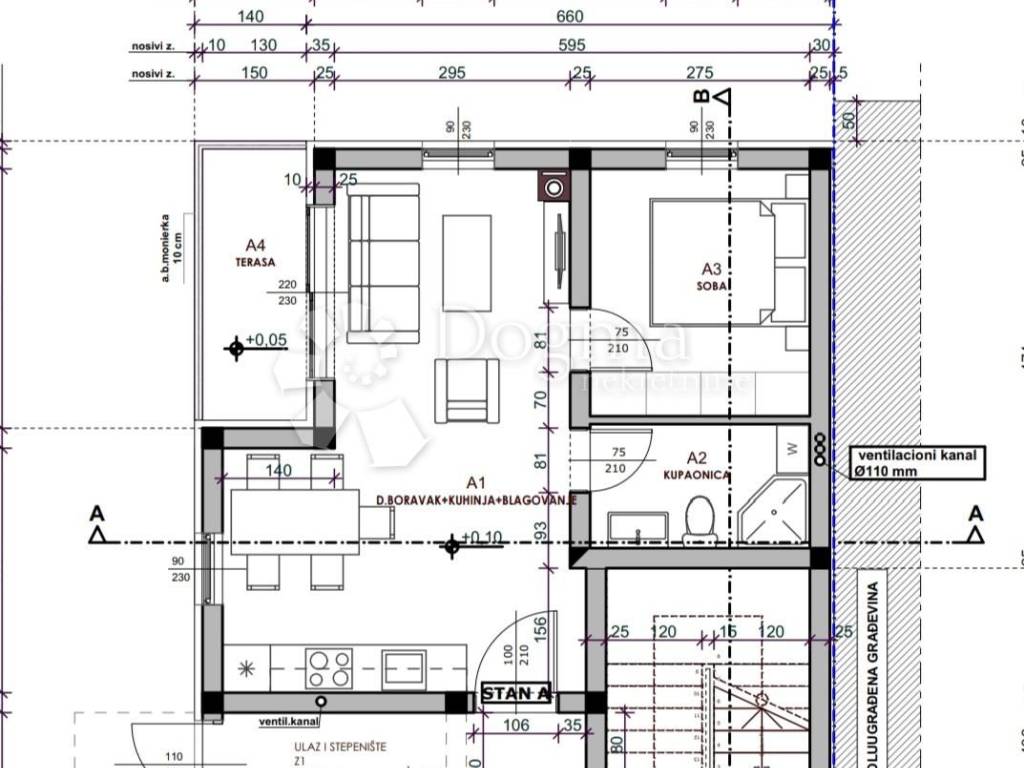 We are opening the doors of this elegant new building in Medulin, where this beautiful apartment of 40.93 m will be located on the ground floor of a building with a total of three apartments. This space is cleverly designed to provide you with everything you need: one spacious bedroom, a modern bathroom, an open-concept kitchen and dining room, and a large terrace that create a comfortable and functional living space.