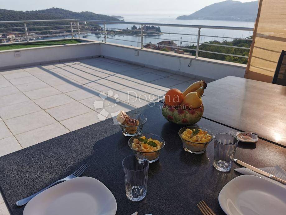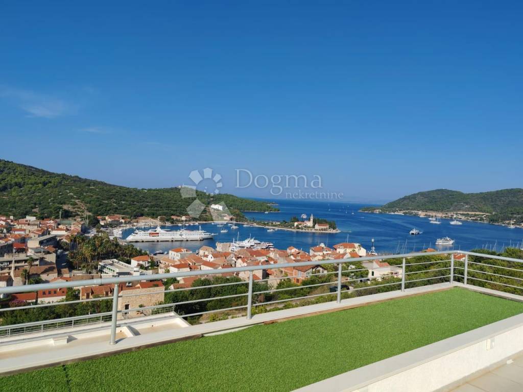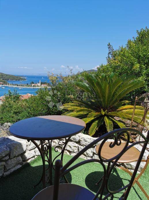 It contains a 40m terrace with a view of Viska Vala with a wooden pergola that can be completely closed.