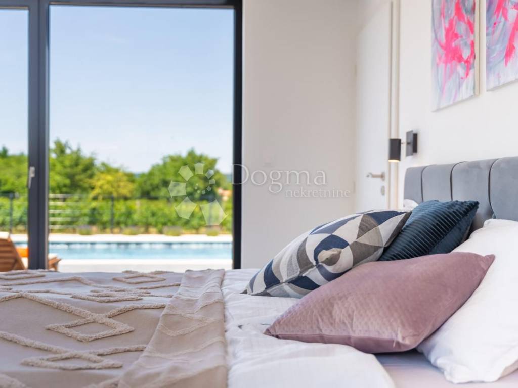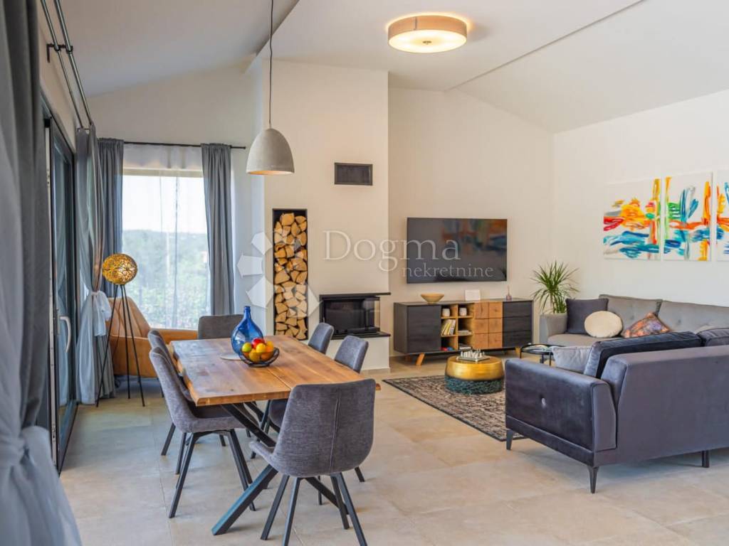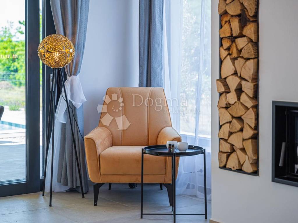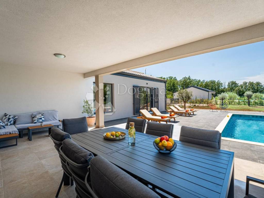The living area leads directly to the covered terrace and sun deck, where there is a 45 m2 (9 x 5) pool, where you can enjoy the silence and the view of the beautifully landscaped garden and the surrounding greenery.