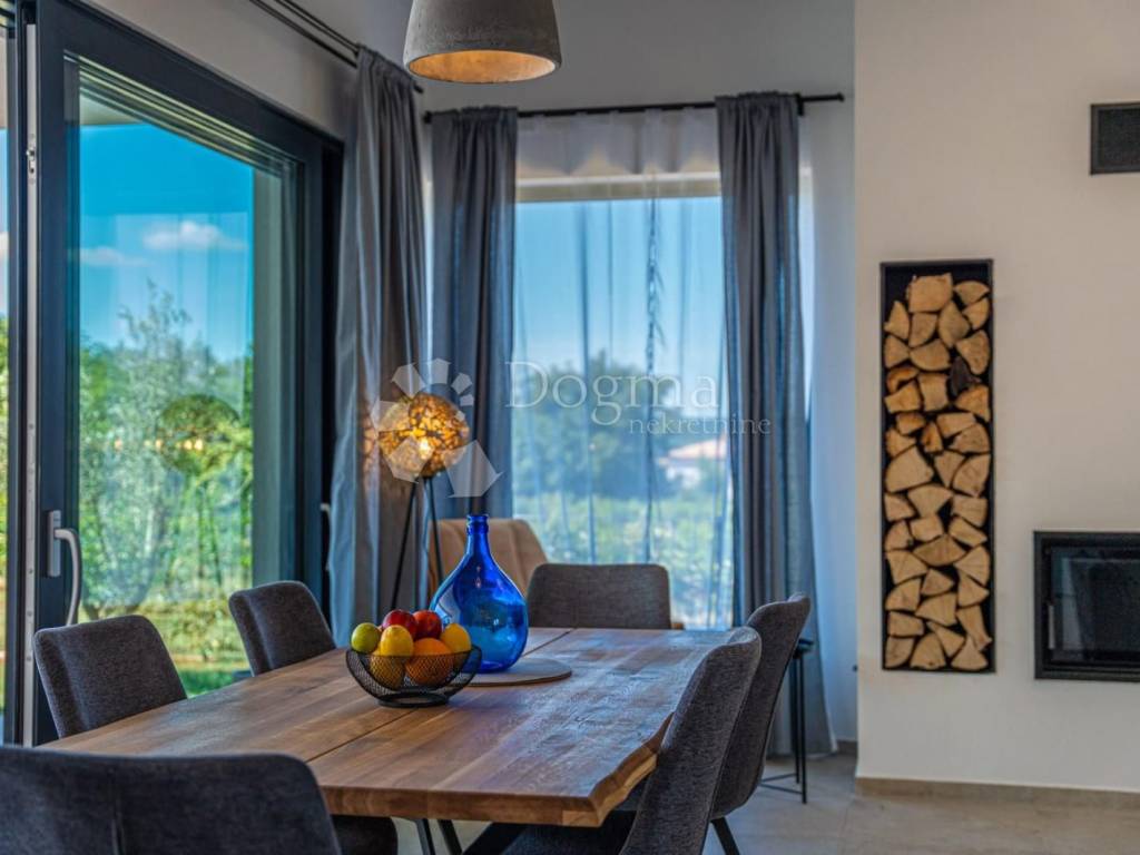 This exceptional villa is located only 15 minutes drive from the town of Labin. It is located on a regular plot of 845 m2, with a view of the nearby vineyards and the mountain Učka.