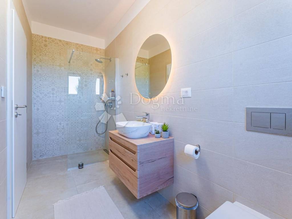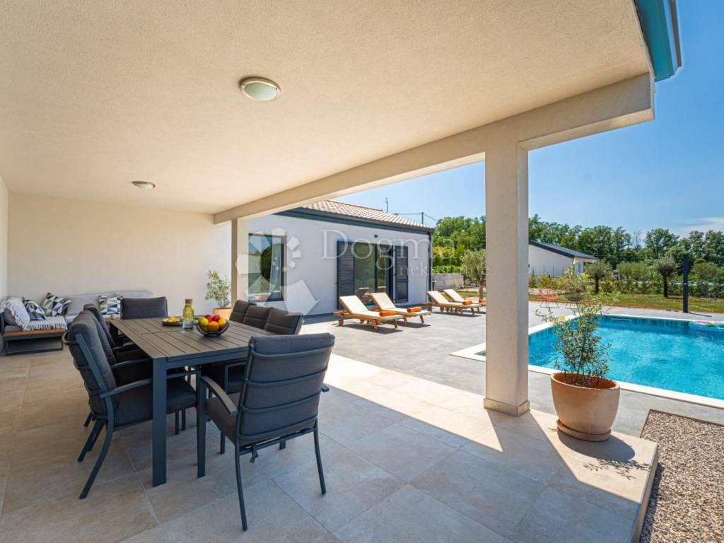 The villa extends to a total of 180 m2 (residential 146 m2 + 34 m2 terrace), and consists of 3 bedrooms and 3 bathrooms. With the fact that the largest bedroom also has a walk-in wardrobe. Then, the kitchen, dining room and living room, which is exceptionally well-lit due to the large sliding walls, as well as the guest toilet and laundry room.