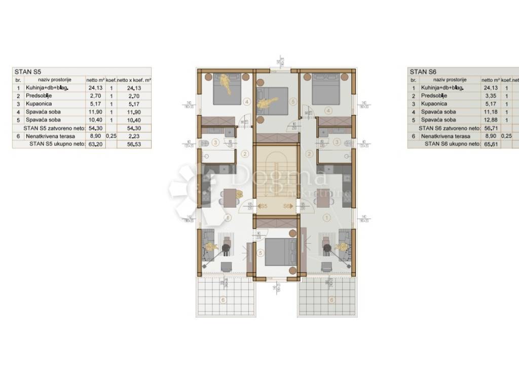 2nd floor - FLAT 6 with sea view, total net reduced area 62.14 m2, of which the closed residential part is 57.24 m2 - consists of: