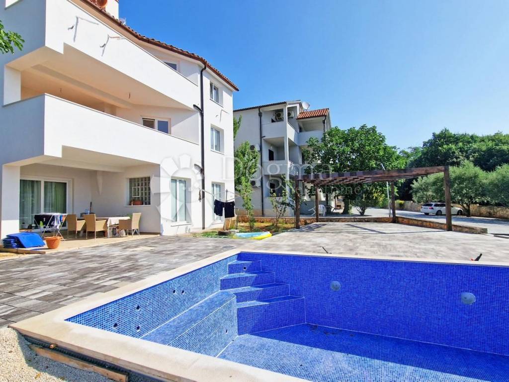 In a quiet, well-organized part of Banjol, 300 meters from the first beaches, a renovated apartment of 106 m2 is for sale on the 1st floor of a detached house with a total of 3 apartments, a shared garden and a swimming pool, and consists of: