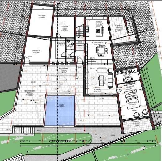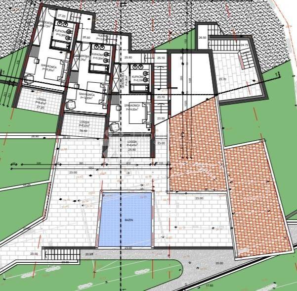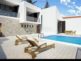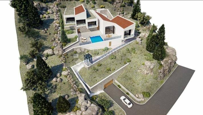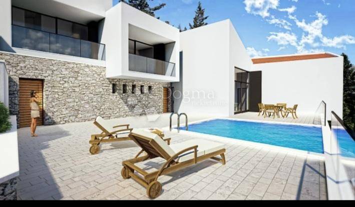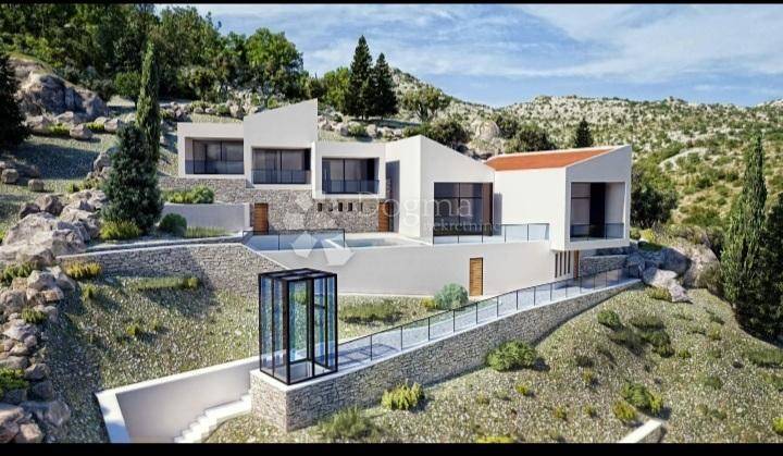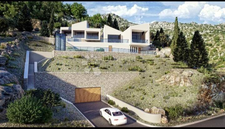 A villa under construction is for sale located in a beautiful setting, on a plot of 1414m2, first row to the sea. The villa has a total of 360m2 and consists of a ground floor. The ground floor of the villa includes a spacious kitchen, dining room and living room, a guest toilet, and one bedroom with its own bathroom and loggia. There are also two covered terraces on the ground floor, ideal for relaxing and enjoying the view of the sea, which is only about 20m away from the villa. The ground floor also includes a laundry room, a technical room, a storage room and a guest toilet. There are also three spacious bedrooms, each with its own bathroom and terrace, providing residents with privacy and comfort. The terrace offers a stunning view of the sea. In front of the villa there is a 20m2 swimming pool, and a fitness room with a sauna and shower. The villa also has a garage for three cars, a charging station for electric cars and an elevator for easier access. Exceptional quality of construction and careful attention to detail make this property an opportunity not to be missed. The listed price refers to the current phase of construction.
