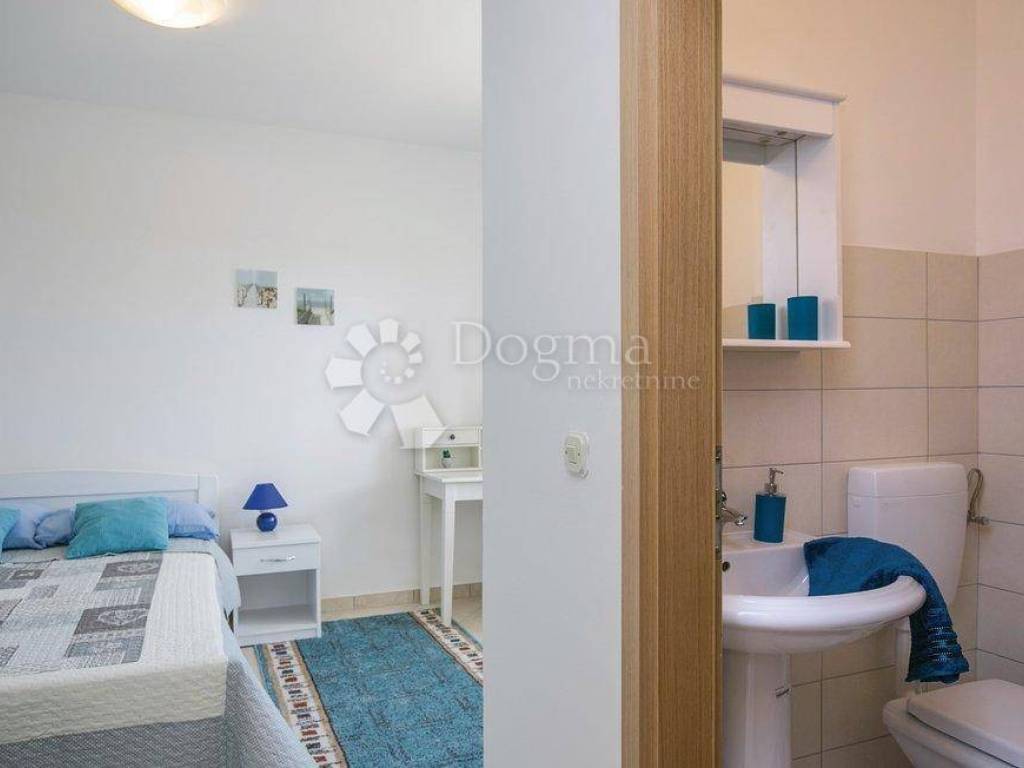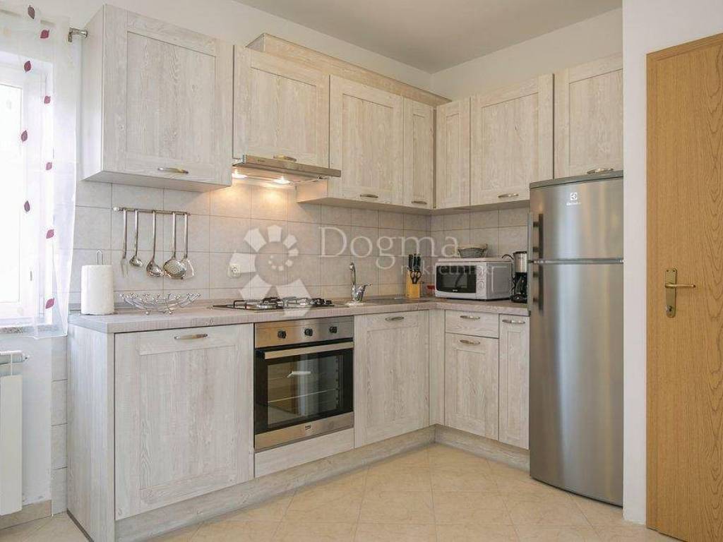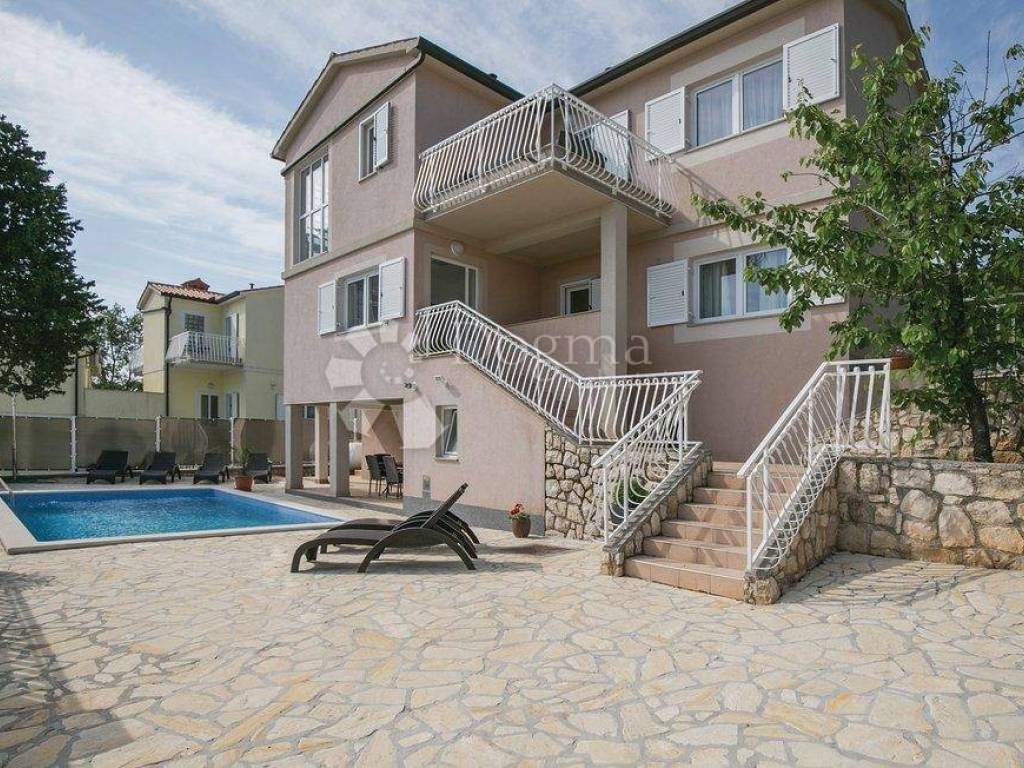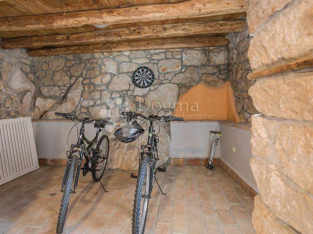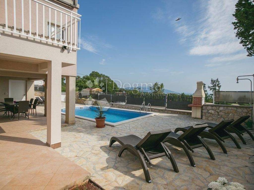 The spacious air-conditioned interior has 4 bedrooms, 2 bathrooms, additional toilet and kitchen with living room, and on the ground floor there is a tavern with a fireplace for evening socializing and relaxation, along with entertainment facilities. Spacious terrace and veranda, sun deck and pool, surrounding greenery and the breeze from Kvarner, will further relax you. From the ground floor and first floor there is a beautiful view of Kvarner and the islands.