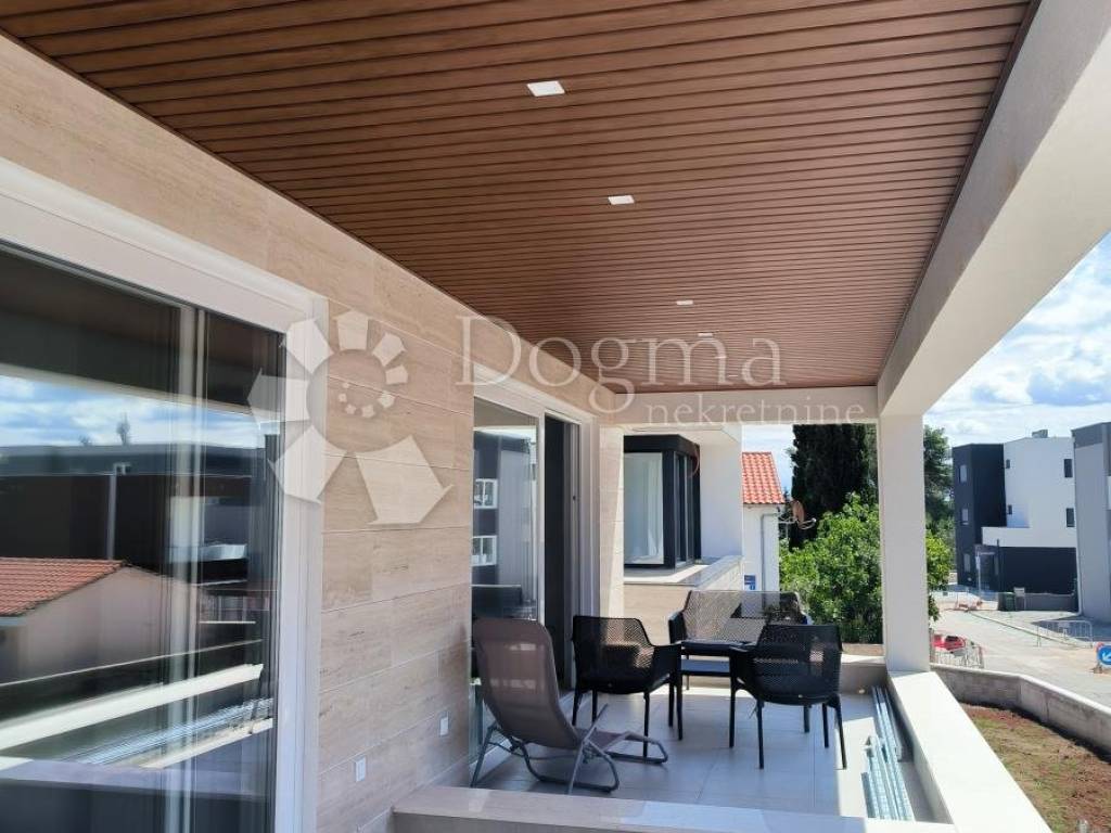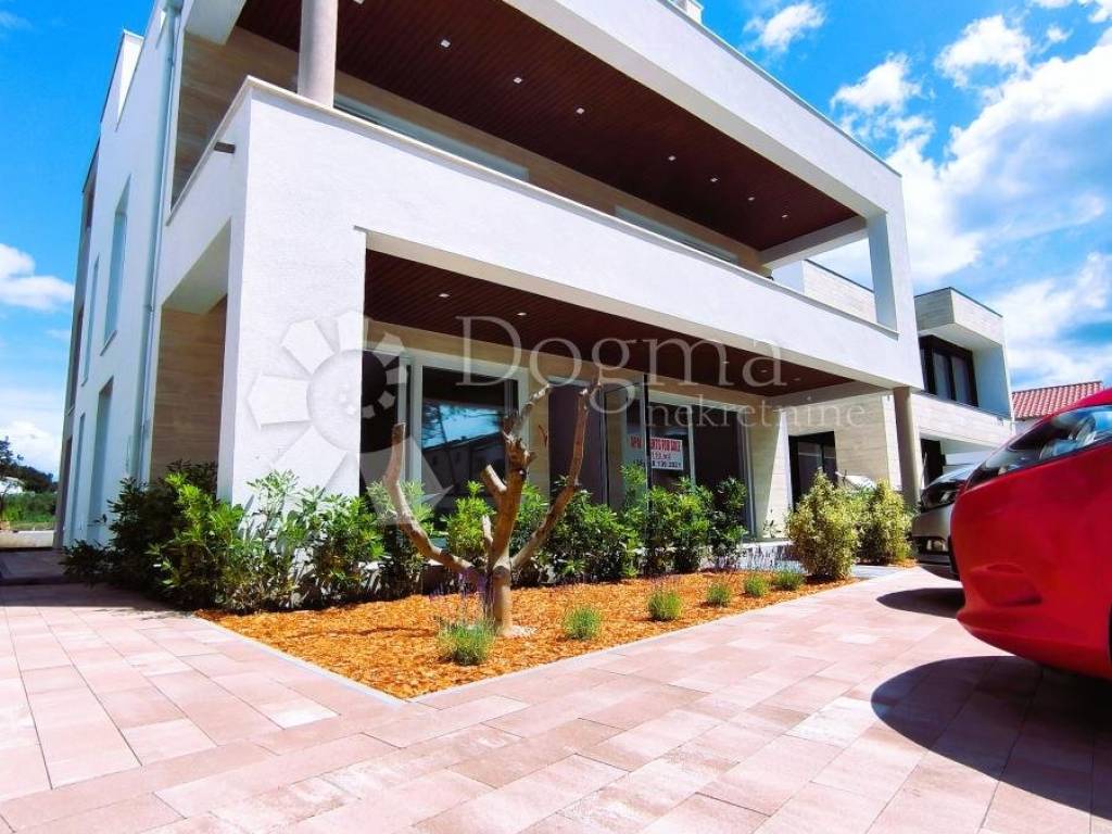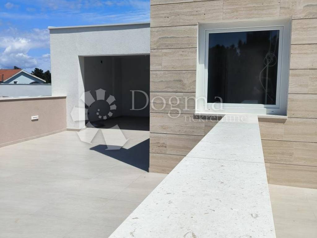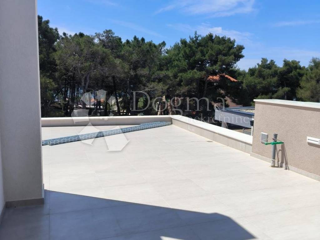 A luxurious apartment for sale in a modern new building on the island of Vir, located only 50 meters from the city beach and the sea. The apartment is located on the 1st floor of a brand new building and has a total usable area of 110m2. The apartment consists of two floors. On the lower floor there is a spacious open space kitchen and living room, two air-conditioned bedrooms, a modern bathroom, a corridor and a 13m2 terrace. On the upper floor, there is one air-conditioned bedroom with a bathroom and a spacious terrace with a summer kitchen and jacuzzi, which offers a stunning and relaxing view of the sea and pine trees.
