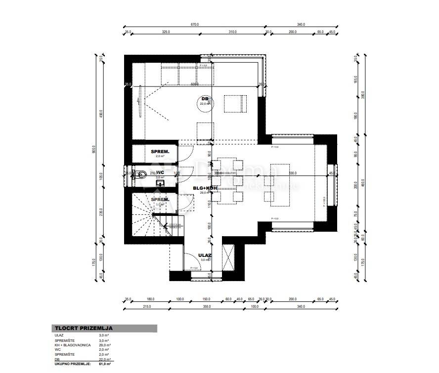 The property is located on a plot of land of 677 m, while the house itself has 106 m.