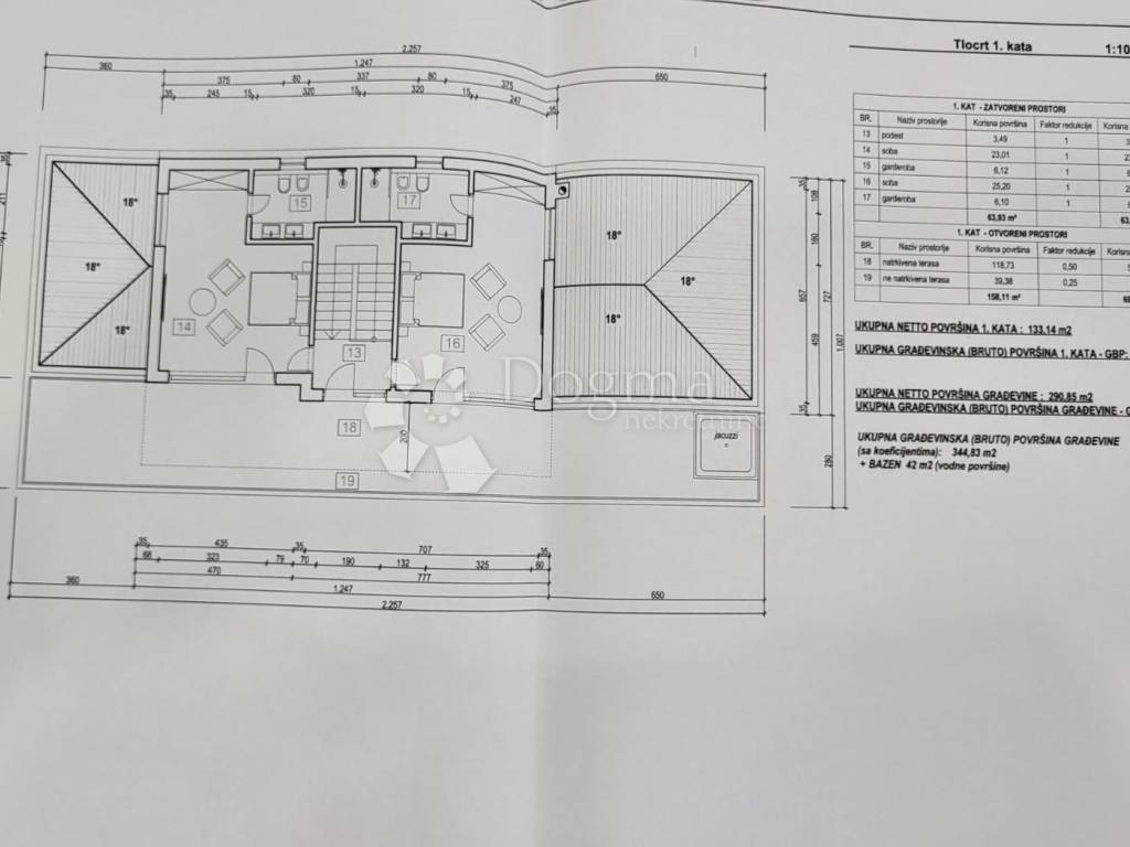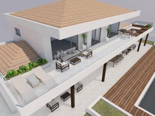 The building consists of two floors, which are connected by hand-made forged stairs, on the ground floor there will be a large kitchen, one bedroom, two bathrooms, a spacious and bright living room with access to a covered terrace and a sunbathing area in the district of a large and spacious outdoor pool with the possibility of summer and winter heating. On the first floor, there will be two bedrooms with a wonderful view of the sea from a lying position, each of which is equipped with a spacious bathroom, and an exit to a spacious terrace where there will be a jacuzzi and a hot tub for enjoying relaxing moments of the day or evening.