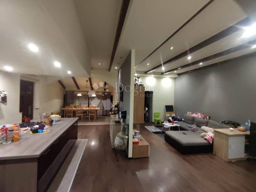 On the first floor there is a large two-room apartment of 120 m2 with a balcony, completely renovated and ready for family living, but also for tourist rental.
