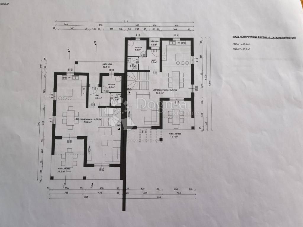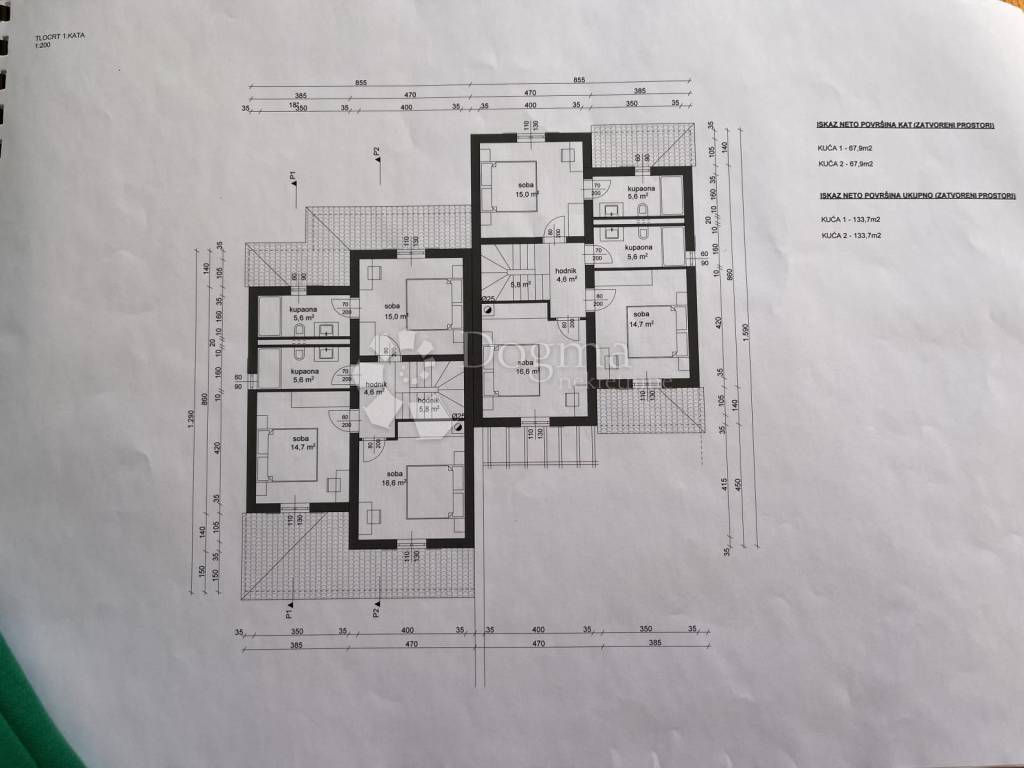 Postoji idejni projekt za gradnju dvije kuće katnice (dvojna) sa bazenima, okućnicom i po 2 parkirna mjesta.