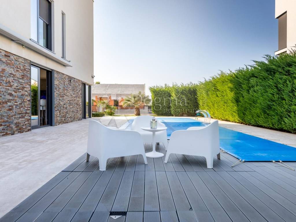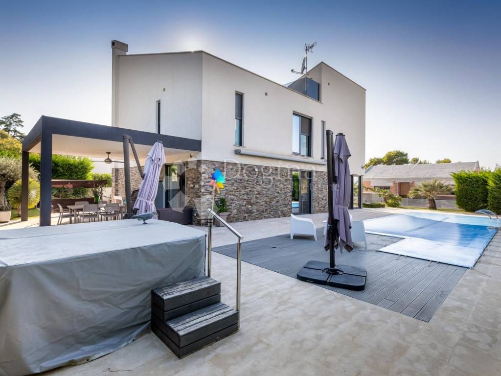 A luxury house for sale in Fažana with a swimming pool and jacuzzi, first row to the sea, located in an elite and quiet part of Fažana, only 80 meters from the beach and 200 meters from the center of Fažana.