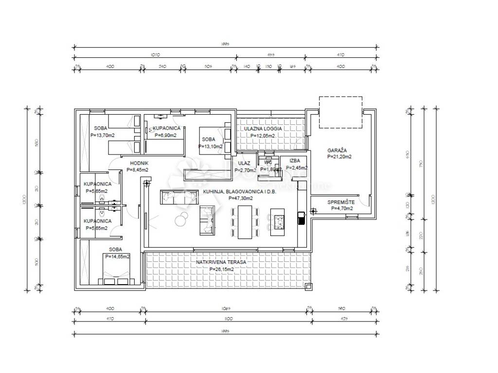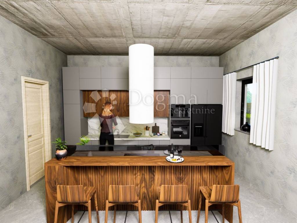 Just a few kilometers from the city center and a 15-minute drive to the first beaches in the tourist resort of Rabac, there is a single-storey house with a swimming pool and a garage under construction with a total area of 200.