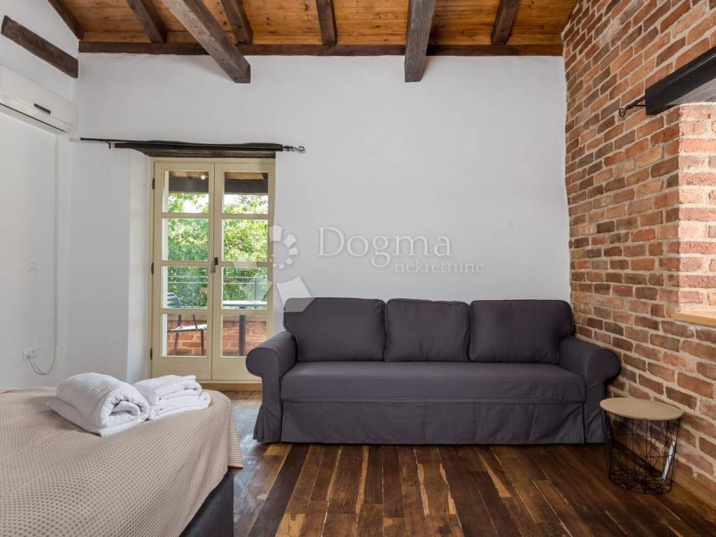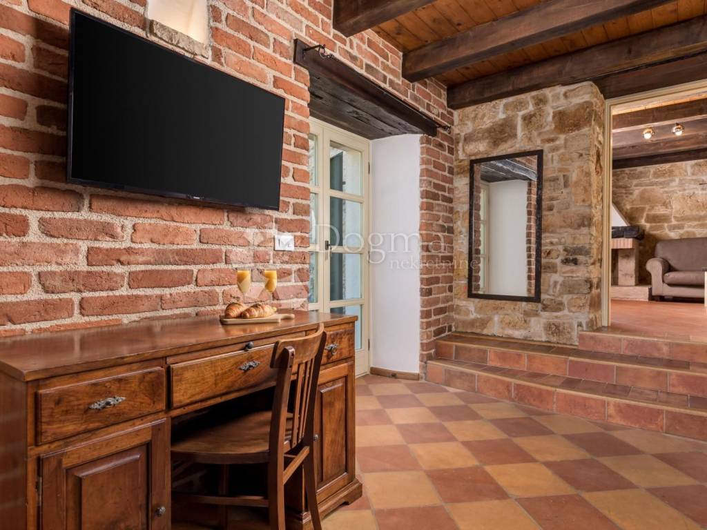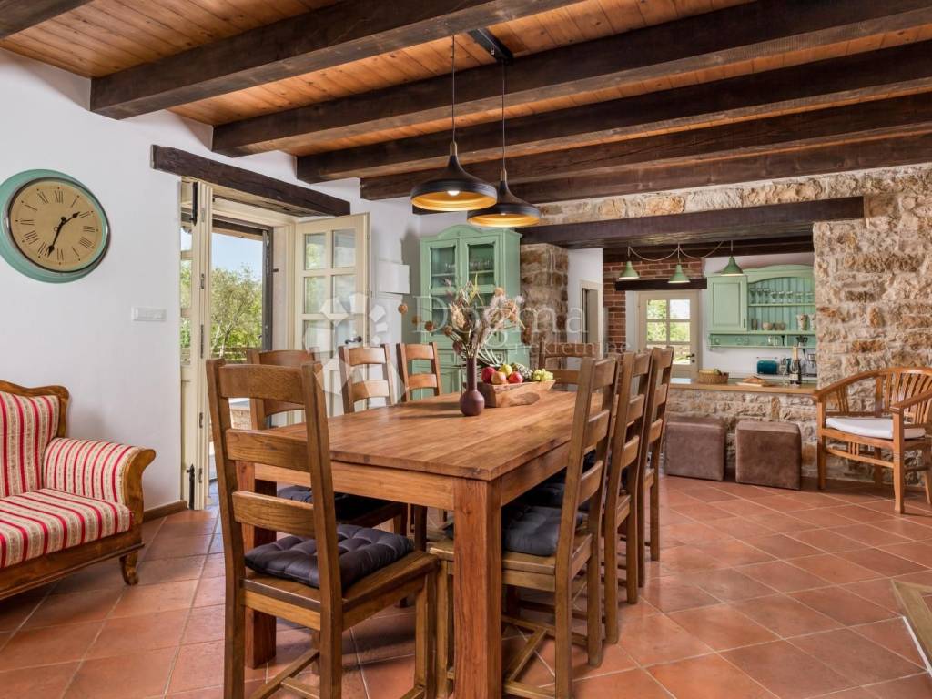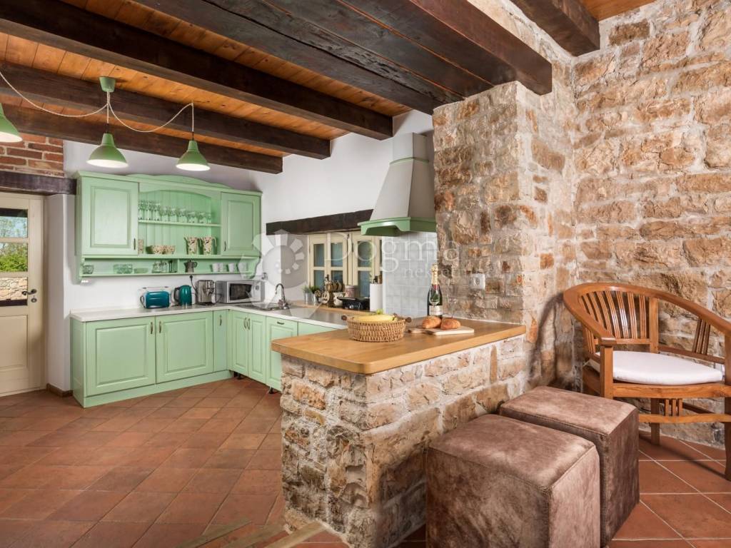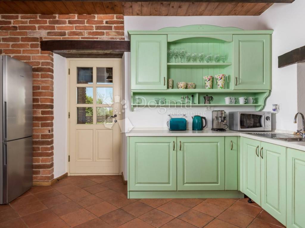 This typical Istrian stone house has an area of 300m2 and is located on a fully fenced 700m2 large plot with a 32m2 swimming pool with a sun deck, private parking and a separate air-conditioned house for socializing with a pool table, table tennis, TV and seating.