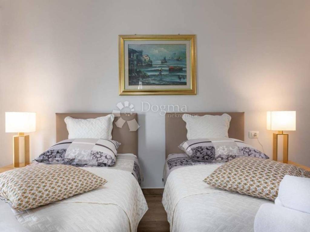 On the first floor of the villa we access a beautiful stone internal staircase consisting of three spacious bedrooms, two of which have access to the terrace with seating furniture with panoramic views of the greenery and the fabulous Sv. Lovreč. Each bedroom has a private bathroom, air conditioning and a TV.