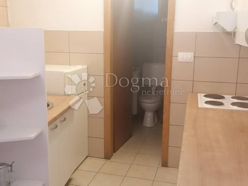 Poslovni prostor od 100 m koji trenutno funkcionira kao stolarska radiona. Pripada mu skladišni prostor te prostor za ured koji je Trenutno uređen kao apartman i iznajmljuje se za 200 /mj. Radiona kao i taj apartman u kompletu iznajmljuje se za 500 /mj a prodaje se sve u kompletu za navedenu cijenu! Ima prilaz za kamione te 1000 m terena skupa sa radionom. Trofazna struja, sanitarni čvor te kupaona u kancelarijskom dijelu. Gradska kanalizacija sa svojim šahtom.