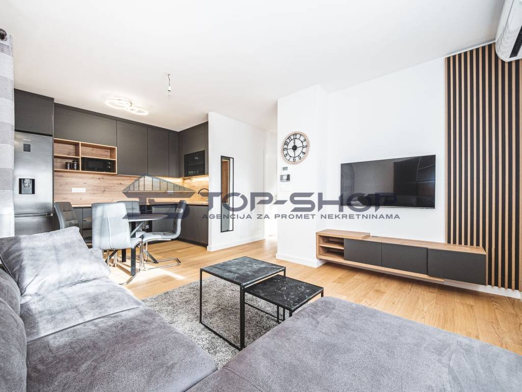 Stan je opremljen modernom kuhinjom s aparatima, perilicom posuđa, perilicom rublja, krevetom i TV-om, što budućim najmoprimcima omogućuje useljenje bez dodatnih ulaganja. Sigurnost je dodatno osigurana protuprovalnim vratima.