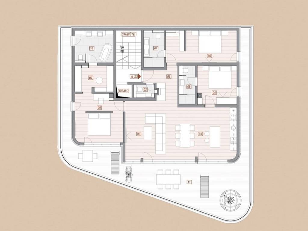 For sale is an exclusive penthouse occupying the entire top floor of a luxury new development in Opatija, with a total area of 204 m². This unique residence offers complete privacy and luxury, with a wraparound terrace on three sides providing breathtaking sea views from every room.   The apartment features a spacious open-plan living and dining area with kitchen, three bedrooms, three bathrooms, and an additional WC. The highlight is the master bedroom of 18 m², which includes a 8 m² walk-in wardrobe and a 10 m² private bathroom with direct access to the terrace. Every room in the penthouse opens onto the terrace through either balcony doors or floor-to-ceiling glass walls, ensuring plenty of natural light and a seamless connection with the sea.   The 70 m² terrace, equipped with a jacuzzi installation, is perfect for private relaxation, entertaining, or creating your own wellness retreat. In addition, the property includes three garage parking spaces, further underlining its exclusivity.   Only the finest materials and equipment have been used: oak flooring, Italian ceramics, Grohe sanitary fittings, Daikin underfloor heating and air conditioning, and premium aluminum windows with thermal insulation.   This property represents a rare opportunity to acquire a prestigious penthouse in Opatija, the ultimate combination of luxury, space, and Mediterranean lifestyle.
