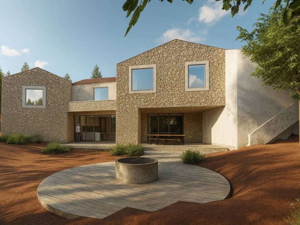 In a quiet location, surrounded by greenery, near the small town of Vrbnik on the island of Krk, a beautiful modern villa with a pool is for sale. Situated on a plot of land of approximately 950 m2, this three-storey building occupies a total living area of 410 m2. On the ground floor there is a large open-concept room that combines the kitchen, dining room and living room. Large glass walls let natural light and greenery into the living area, also connecting it to the outdoor terrace and its contents. On this floor there is a guest bathroom, an en suite bedroom, a staircase leading to the wine cellar and a wellness room with a sauna. On the floor above there are four bedrooms, each with its own bathroom. The garden includes a swimming pool, a sunbathing area and an outdoor terrace with a summer kitchen. The house has a garage and the plot provides outdoor parking for several cars. The villa combines modern details such as clean straight lines and large glass walls with traditional materials such as wood and stone. Thanks to its location, it ensures privacy while the first beaches are located about 500 meters away. This villa is an excellent investment for tourist rental and as an oasis for a family vacation.