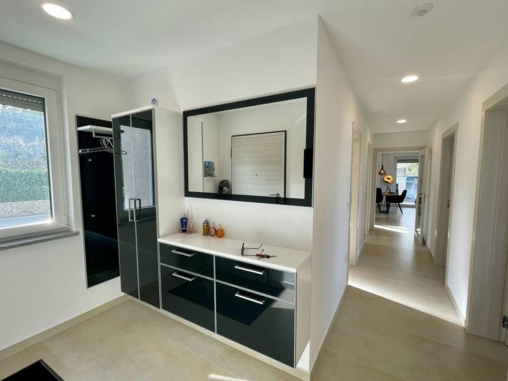 For sale is a modernly furnished apartment located in Malinska, on the first floor of a multi-family building in an excellent location, near the sea, beautiful beaches and the town center. The total living area of ​​135 m² includes an entrance hall, three bedrooms, one of which is currently used as an additional living room, two bathrooms, a separate toilet, a kitchen with a dining room and a living room that has access to a spacious covered terrace of 19 m² with a sea view. The apartment is comfortable, modernly furnished and functionally arranged. It is sold fully furnished and equipped and is ready to move in. It is equipped with air conditioning, PVC exterior carpentry, underfloor heating in the bathrooms and security doors. It comes with two parking spaces in the shared courtyard. Thanks to its attractive location and layout, this property represents an excellent opportunity for both personal vacations and as an investment for tourist rentals.