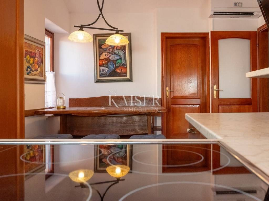 Rovinj, the pearl of Istria, is one of the most charming coastal towns on the Adriatic. Picturesque stone streets, the recognizable bell tower of the Church of St. Euphemia and the picturesque coast create a unique Mediterranean atmosphere. This historic town offers a rich cultural heritage, top-notch gastronomic experiences and crystal clear sea, making it a perfect destination for vacation and life. Kaiser Immobilien presents you with a spacious 63 m² apartment, located on the second floor of an authentic stone building in the old town of Rovinj, in one of the rarest and most desirable locations - first row to the sea. A long entrance hall leads you to the bright central part of the apartment, a space that, thanks to large skylights, exudes warmth and a special atmosphere. In one spacious unit are the living room, dining room and fully equipped kitchen with electric stove, Zanussi oven and new Beko refrigerator, and the view of the sea that reaches through the skylights makes this space extremely pleasant and unique. The apartment has two comfortable bedrooms equipped with double beds and Mitsubishi air conditioners, which ensure a comfortable temperature throughout the year. The rooms offer a view of the beautiful streets of Rovinj and the surrounding historic buildings, creating an authentic Mediterranean experience. The large bathroom is equipped with a shower, toilet, washing machine connection and additional storage space, while the apartment also has an additional guest toilet, which further contributes to the practicality of everyday life. Heating is possible via electric heaters or air conditioners, which also provide effective cooling in the summer. Ceramic flooring is installed throughout the apartment, which makes it easy to maintain, and the property itself requires minor renovation, providing an excellent opportunity for the future owner to adapt the space to their own wishes. The wooden joinery was made in accordance with the regulations of the city of Rovinj and emphasizes the traditional character of the building. Although the apartment does not come with a parking space, its value is significantly increased by the fact that it is located in an old stone building with several apartments, which has a shared terrace on the ground floor with direct access to the sea - a privilege offered by only a few properties in this part of Rovinj. The atmosphere of the old town, the proximity to the sea and the charm of historical architecture make this property truly special. This apartment is an excellent opportunity for anyone looking for a combination of authentic ambience, prestigious location and functional space. With an established rental for almost the entire year and an ideal position for a summer residence, the apartment is the perfect choice for living, vacationing or a secure investment in one of the most beautiful cities in Istria. Restaurant - 100 m Café - 90 m Shop - 350 m Market: 300 m Landmarks: 10 m Church of St. Eufemije: 200 m Sea- 1 m Beach- 1 m-200m Marina- 700 m Parking- 650 m Post office- 800 m Müller- 850 m Bus station: 850 m Airport- 40 km Distance from major cities: Rovinj- Ljubljana: 186 km Rovinj- Vienna: 567 km Rovinj- Budapest: 591 km Rovinj- Prague: 838 km Rovinj- Munich: 587 km Rovinj- Zagreb: 250 km The agency commission for the buyer is 3% + VAT and is paid in the case of purchasing a property, upon conclusion of the first legal act. Interested buyers can view only after signing a real estate brokerage contract. ID-CODE: 127-190 If you would like to visit the property in person, please contact: Jennifer Hofmann E-mail: jennifer@kaiser-immobilien.hr Tel: +385-91-515-0887 http://kaiser-immobilien.hr/
